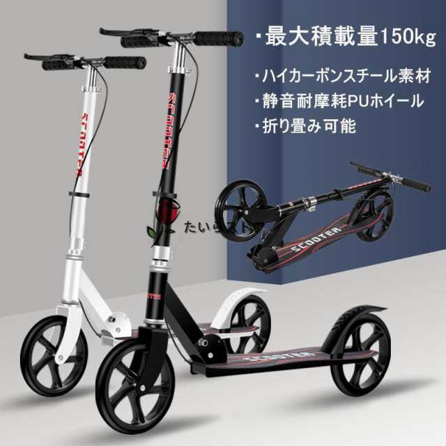 キックボード 大人用 キックスクーター 折り畳み式 フット/ハンドブレーキ 高さ調整可能 20cmホイール 耐荷重150kg 持ち運び便利