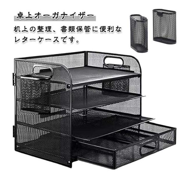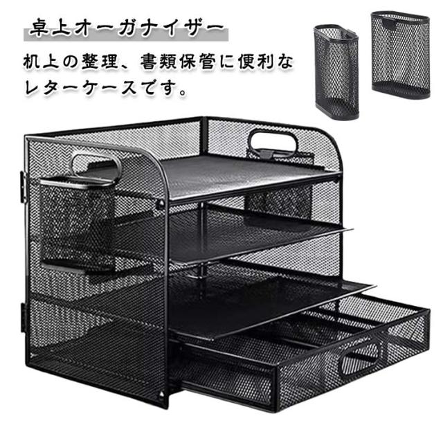 書類ケース 小物 卓上オーガナイザー 仕切り付き 省スペース ペン入れ付き 引き出し 収納 小物入れ 卓上収納 小物ボックス付き 4段 デスク収納 卓上オーガナイザー 整理整頓 デスク周り 事務用品