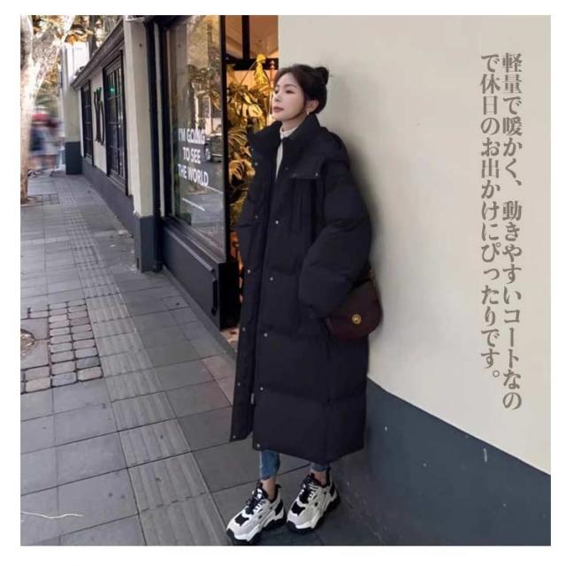 【ほっち】中綿コート レディース ロング丈 ロングダウンコート ダウンコート ダウンジャケット 超ロング 中綿ジャケット フード付き 無地 軽量 保温 防寒 防風 撥水 冬服 ハイネック あたっか ゆったり アウター 冬 暖かい シンプル 作業着 秋冬用 男女兼用 送料無料