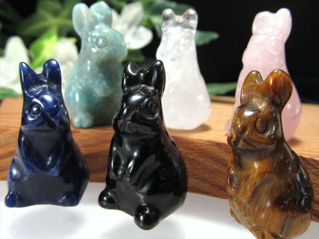 選べる6種 ミニうさぎ 彫刻置物 1個売り 高さ約25mm前後 タイガーアイ オブシディアン ローズクォーツ アベンチュリン 水晶 ソーダライト ウサギ 兎 幸運を運んでくれる神聖な生き物 商売繁盛 子孫繁栄