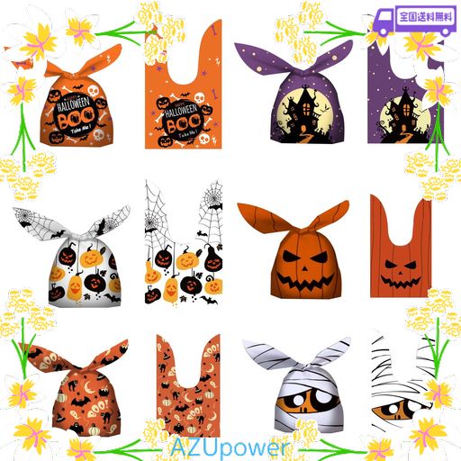 ハロウィン 袋 60枚セット 6柄 2サイズハロウィン お菓子袋 キャンディバッグ ラッピング 袋 小分け袋 うさぎ耳 プレゼント ギフトバッグ かぼちゃ おばけ ゴースト