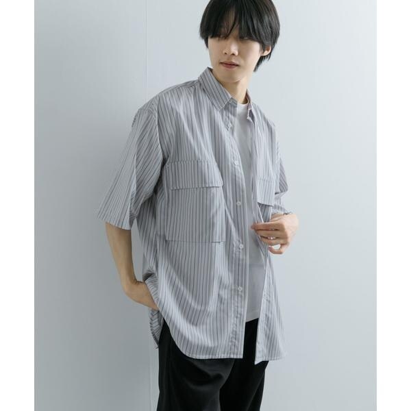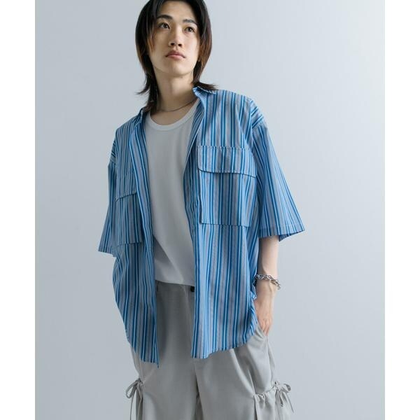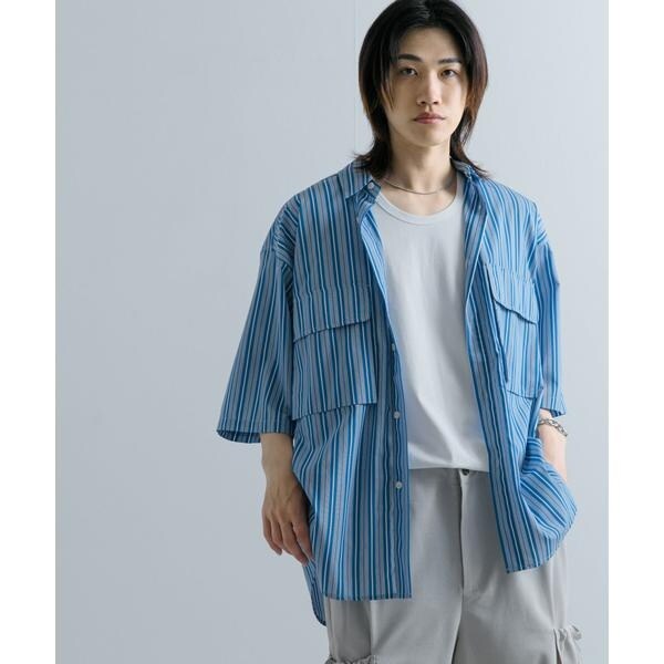 センスオブプレイスバイアーバンリサーチ(SENSE OF PLACE)/ストライプCPOルーズシャツ(5分袖)