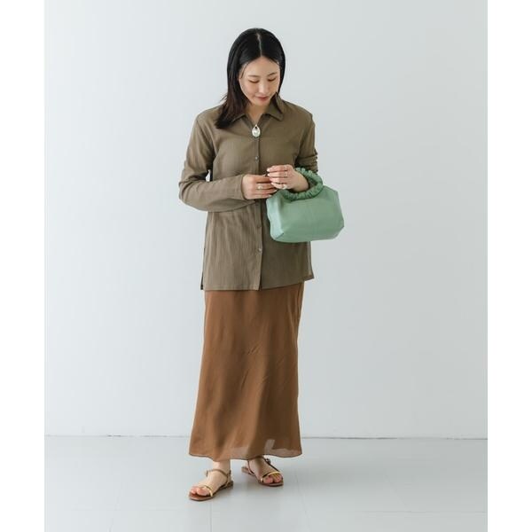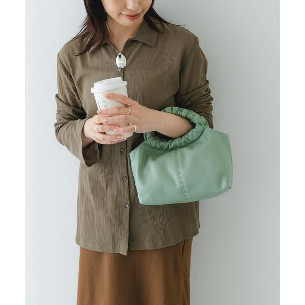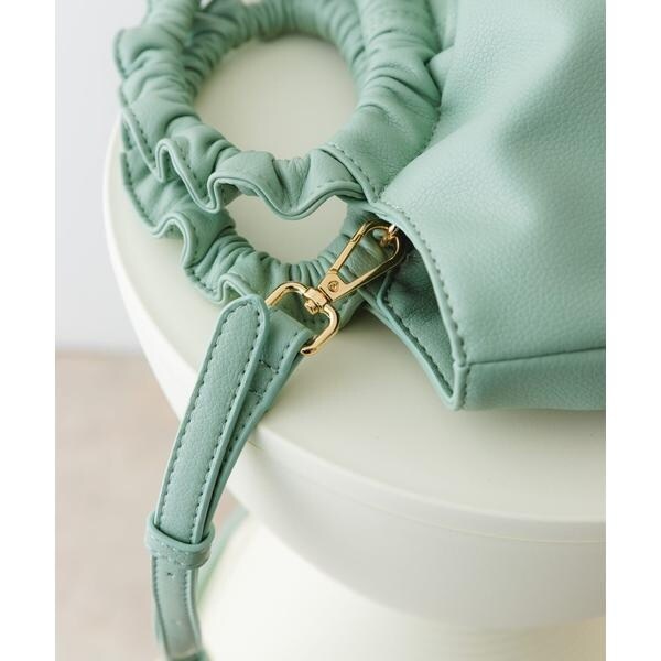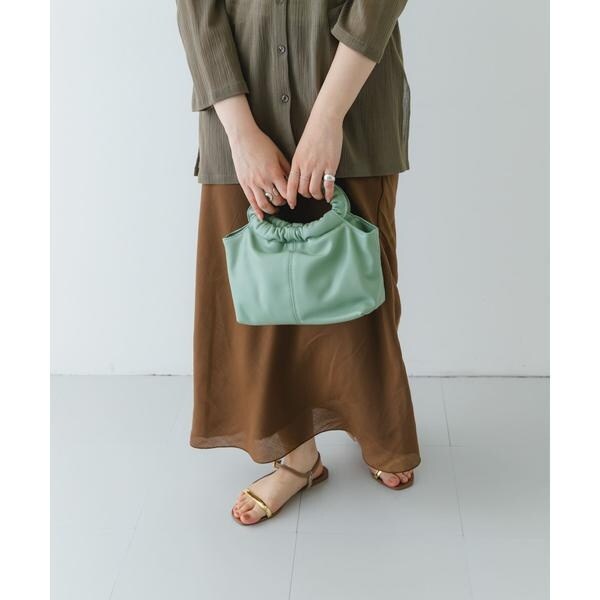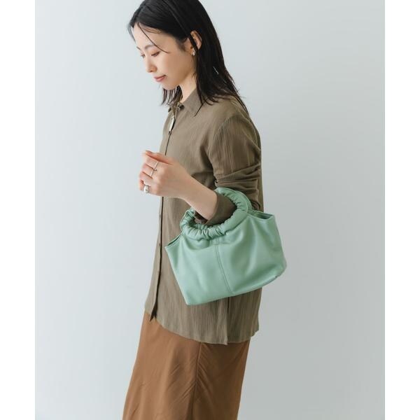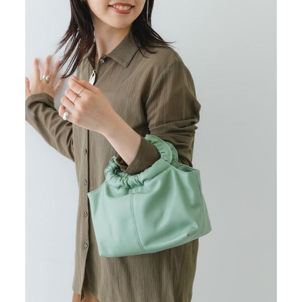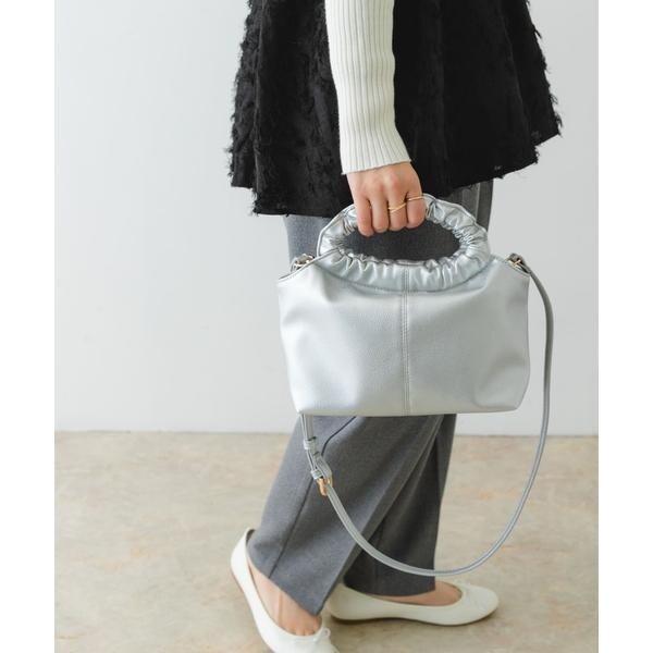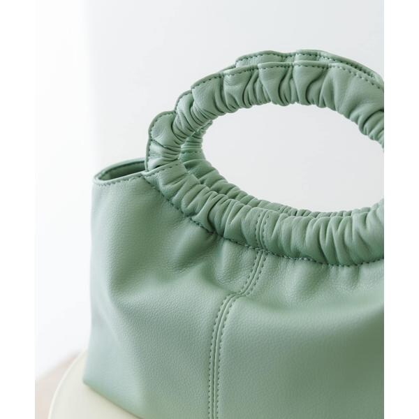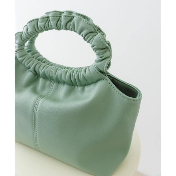 ハンドル部分のギャザーデザインがポイントのハンドバッグ。