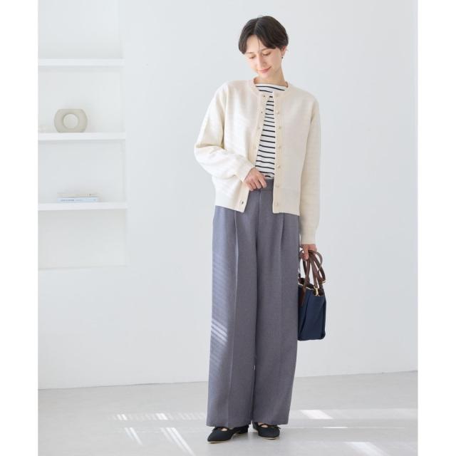 ・無地タイプはオンオフ問わず活躍するので、きれいめのスラックスやテーパードパンツ、ナロースカートに合わせれば、上品なオフィスカジュアルが即完成。