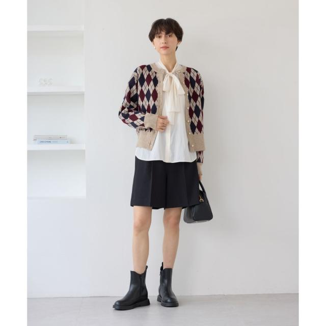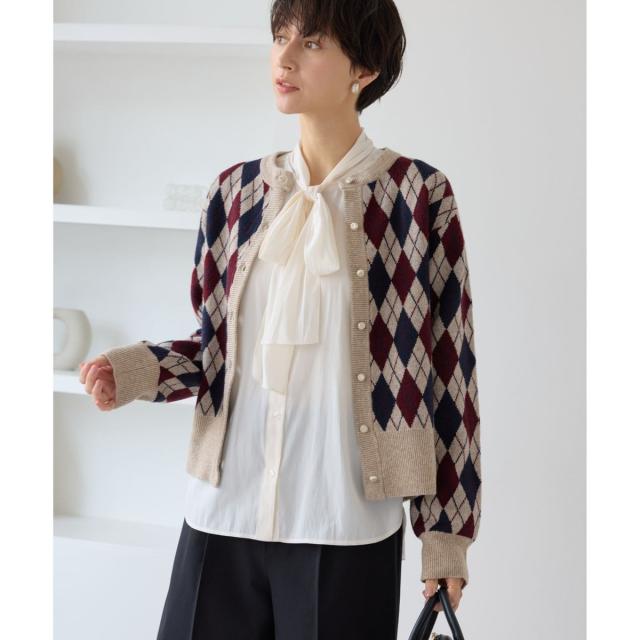 ・アーガイル柄はカーディガンを主役にしたトラッドスタイルがおすすめ。ボウタイブラウスを合わせればクラシカルに、タートルネックニットを合わせればシックな印象の仕上がりに。
