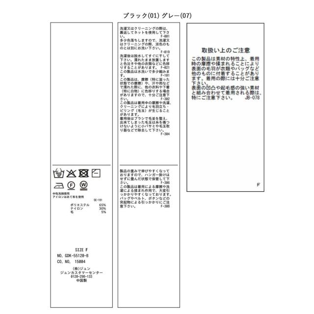 ■素材:ブラック(01)、グレー(07):ポリエステル 65% ナイロン 30% 毛 5% オフホワイト(15):アクリル 62% ポリエステル 33% 毛 5% ベージュ(27):ポリエステル 47% アクリル 37% ナイロン 12% 毛 4%