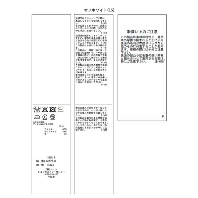 オフホワイト(15):アクリル 62% ポリエステル 33% 毛 5%