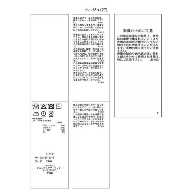 ベージュ(27):ポリエステル 47% アクリル 37% ナイロン 12% 毛 4%