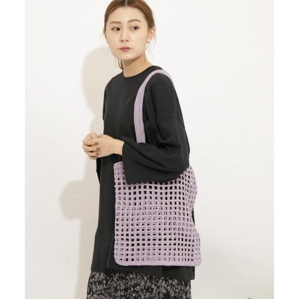 A4収納可◎透かし編みが涼しげなハンドニットトート