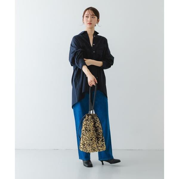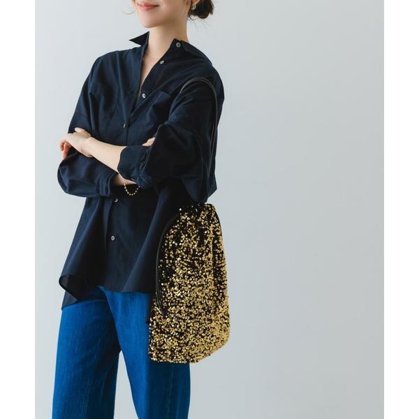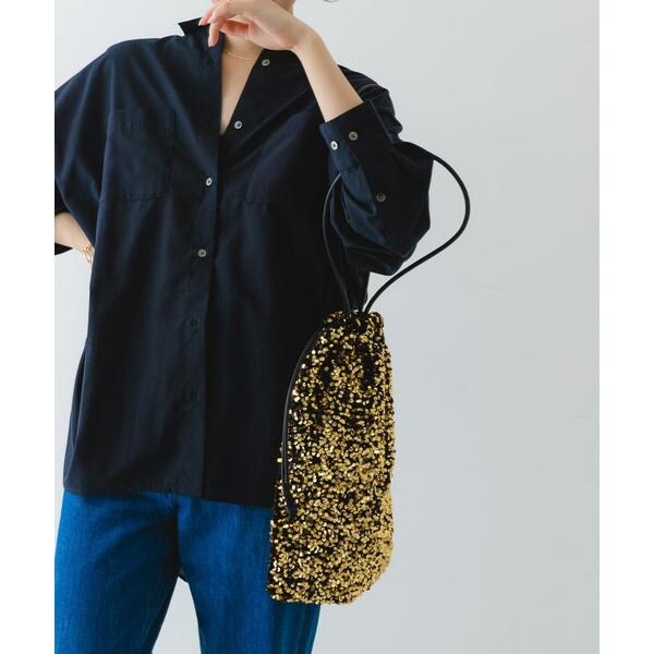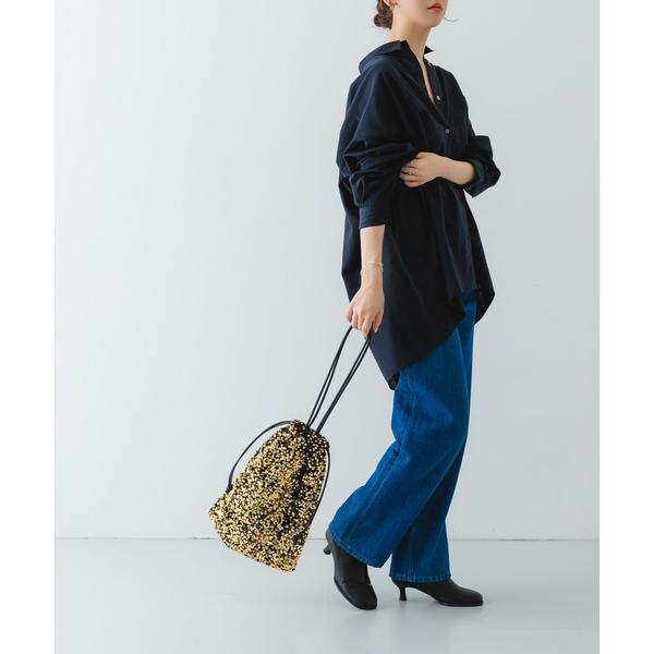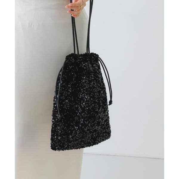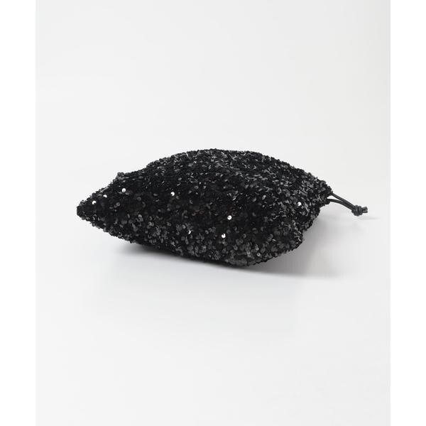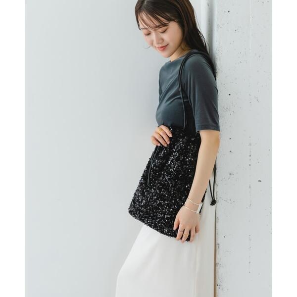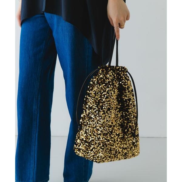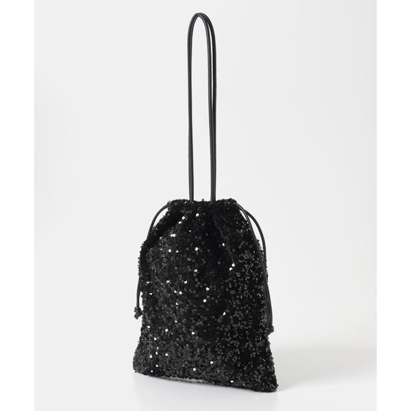ダークトーンの色が多くなりがちな秋冬のお洋服に華やかな印象を与えてくれるスパンコールをふんだんにあしらったドロストトートバッグ。ドロスト部分を絞ると巾着型になり表情を変えてお使い頂けます。