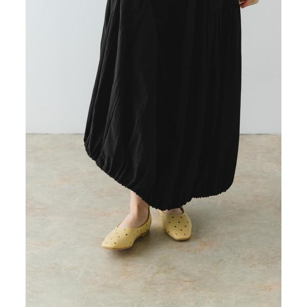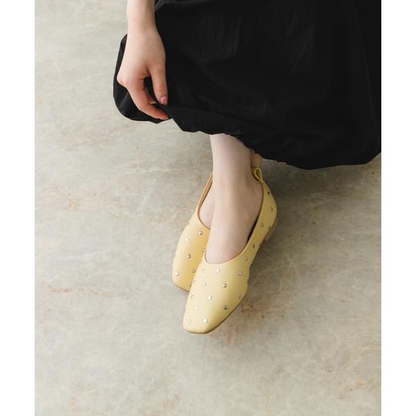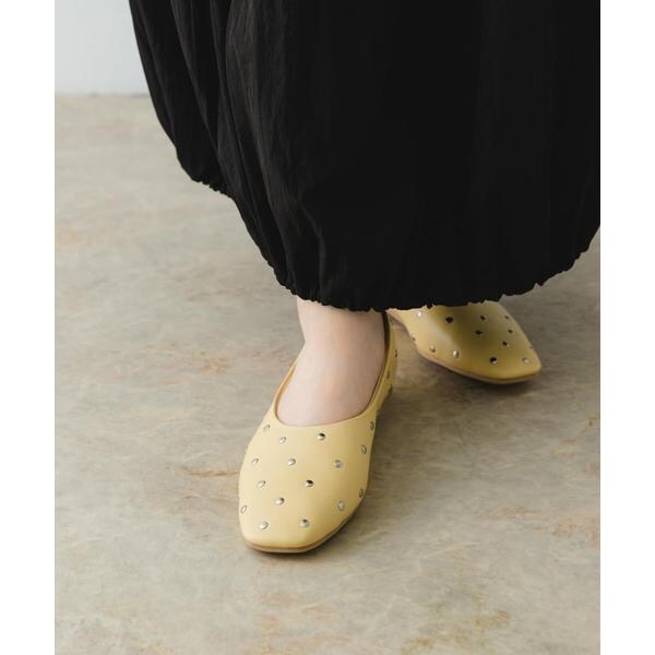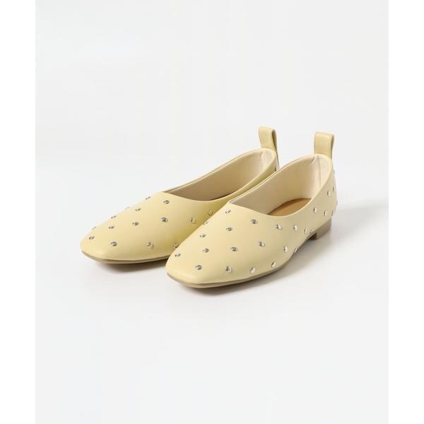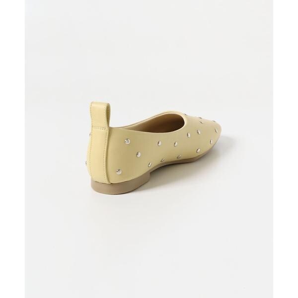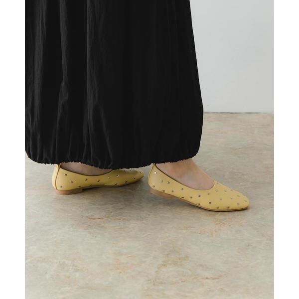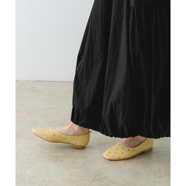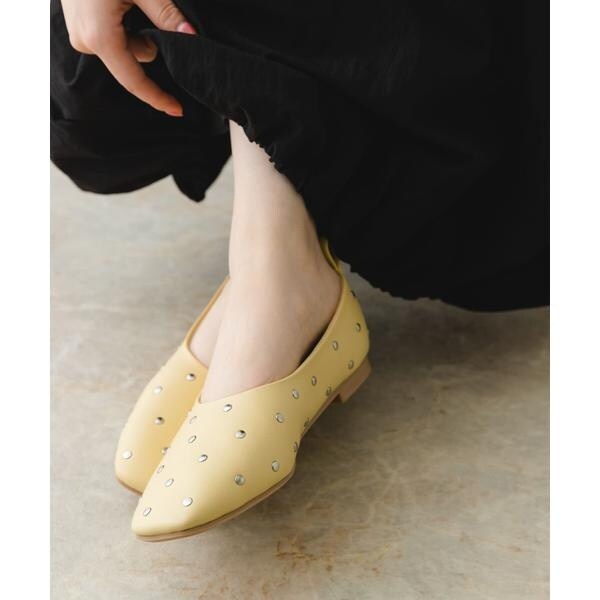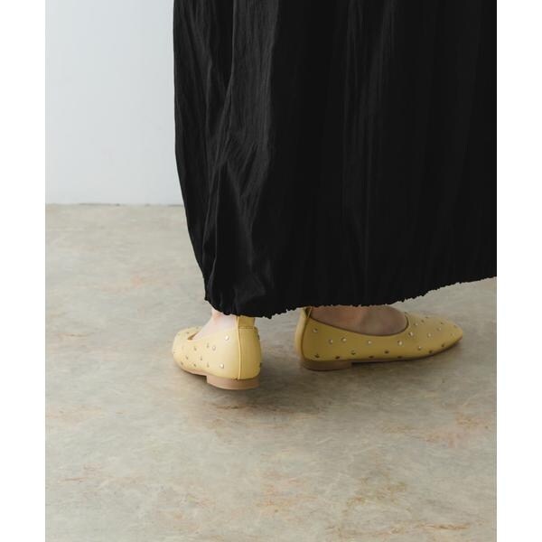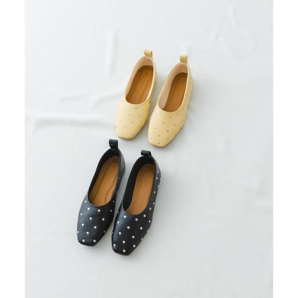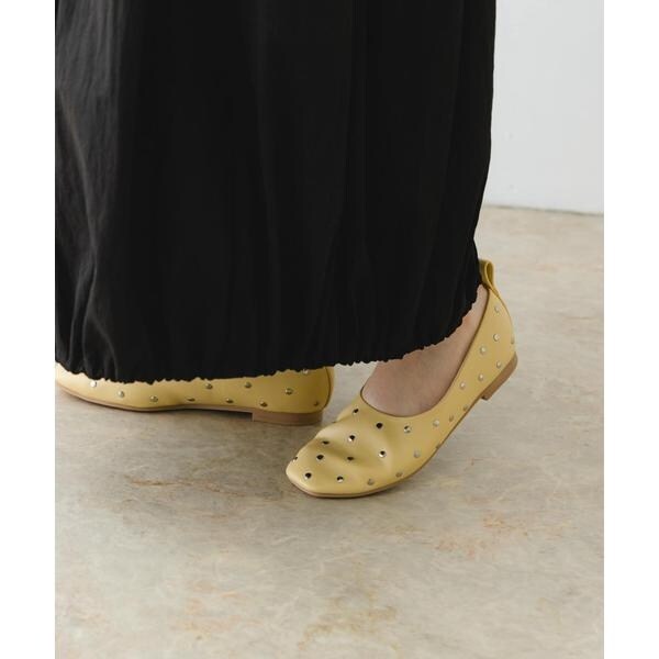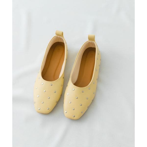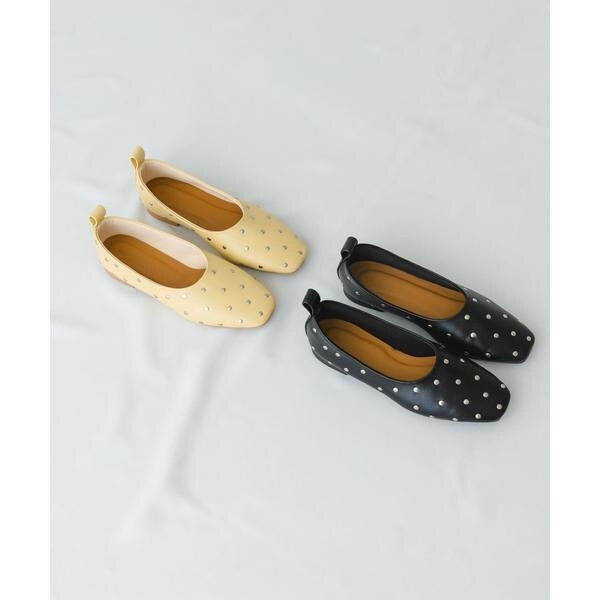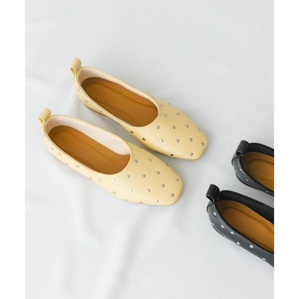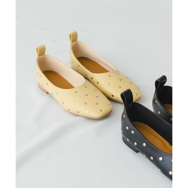 ソフトな合皮にスタッズがアクセントになるフラットシューズ。