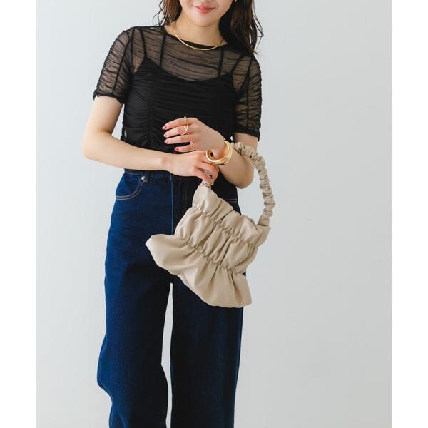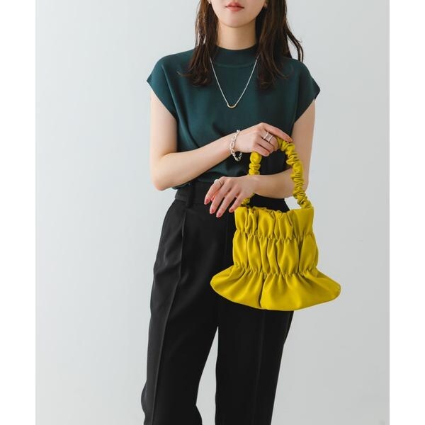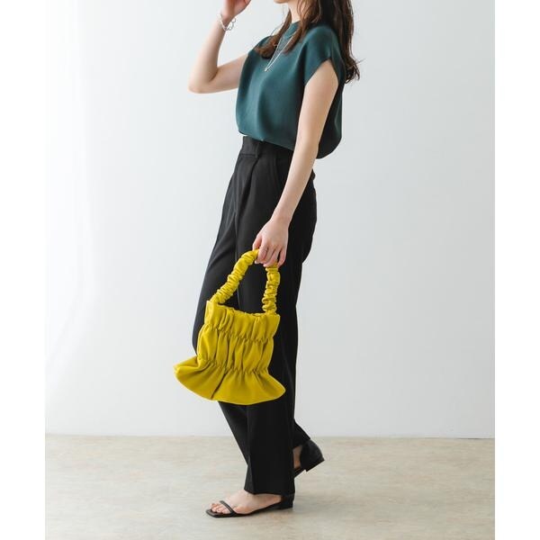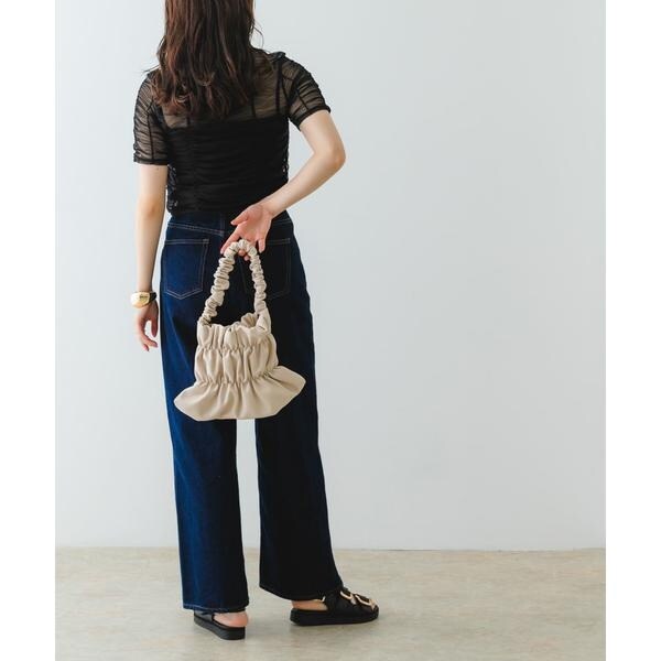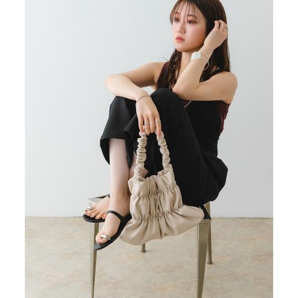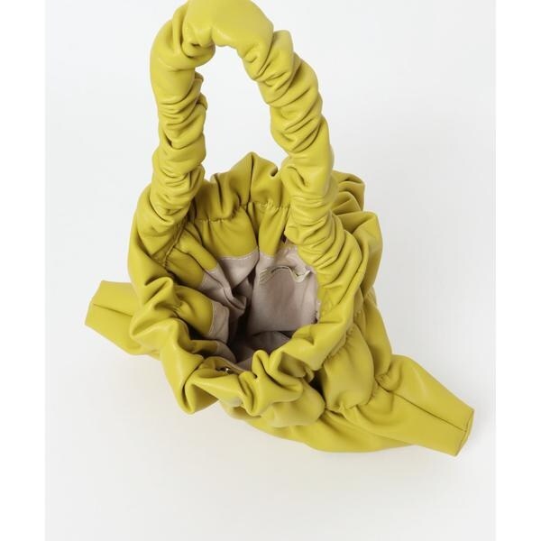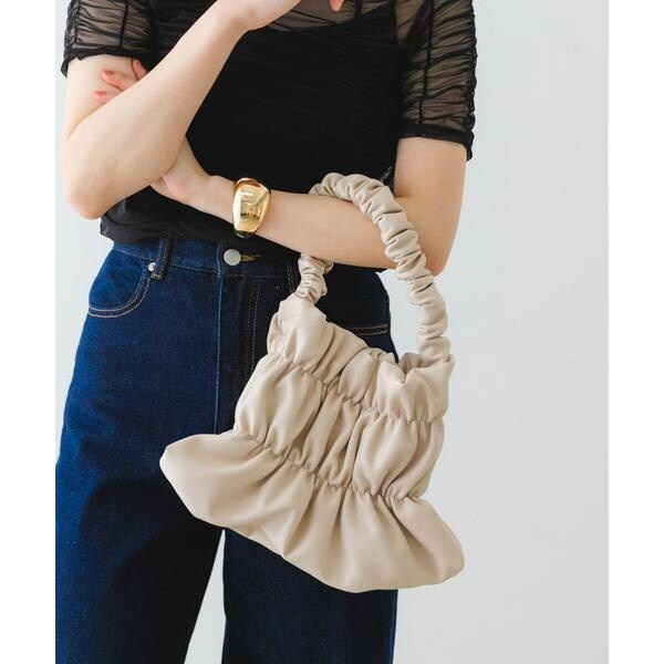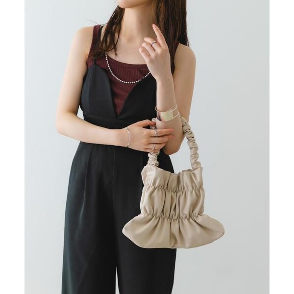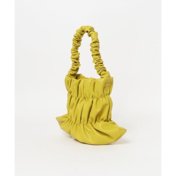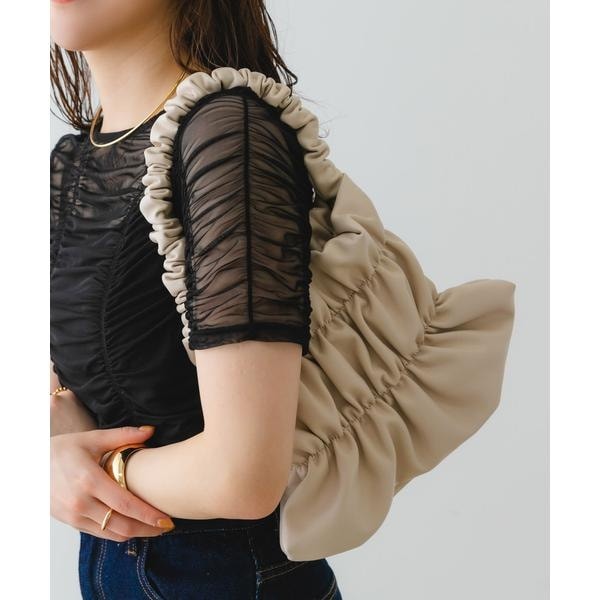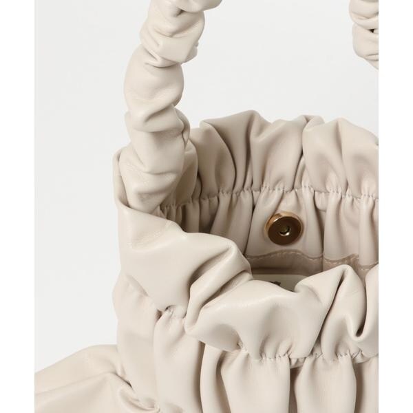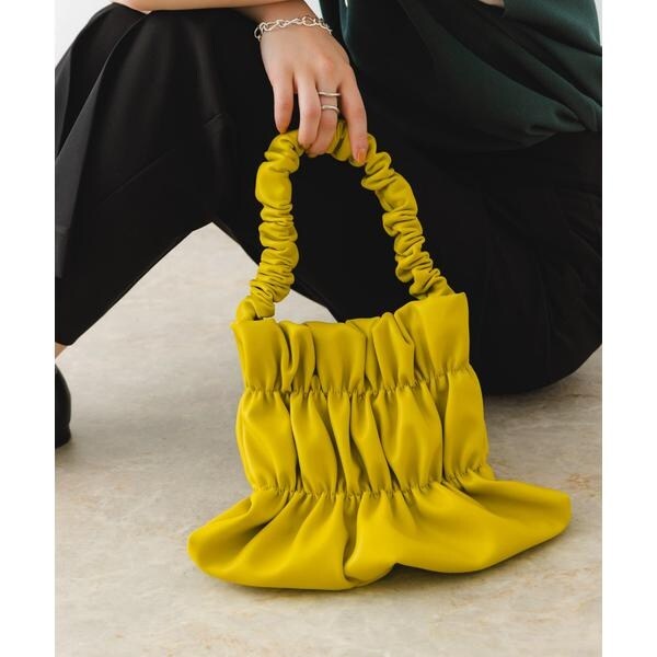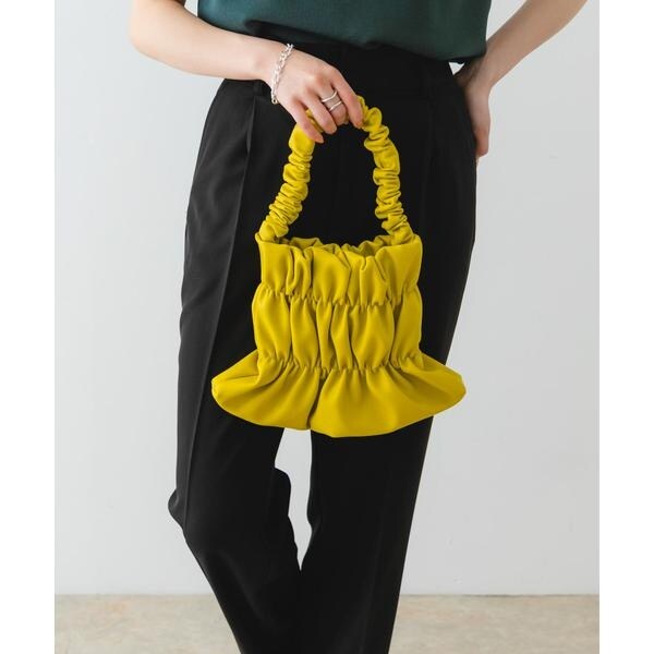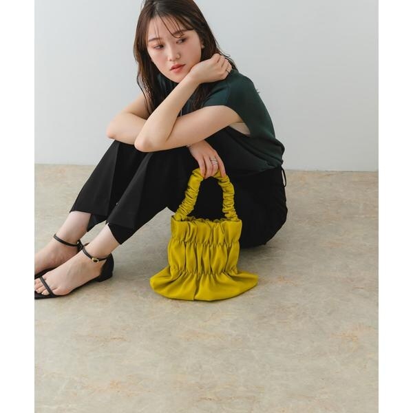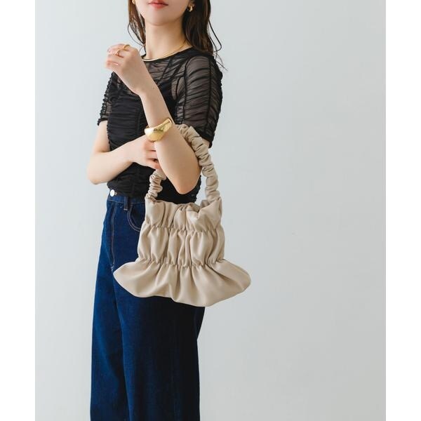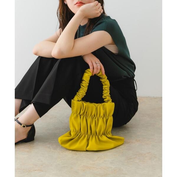 バッグ全体にあしらわれたギャザーがアクセントになるハンドバッグ