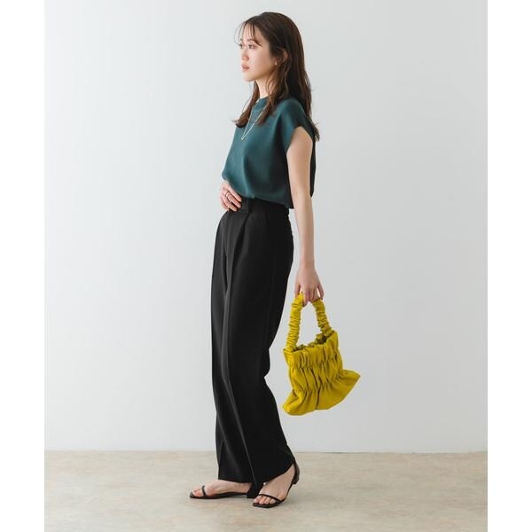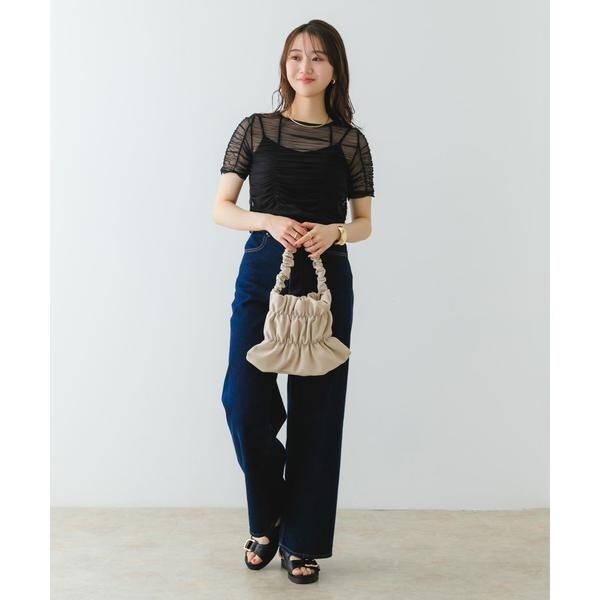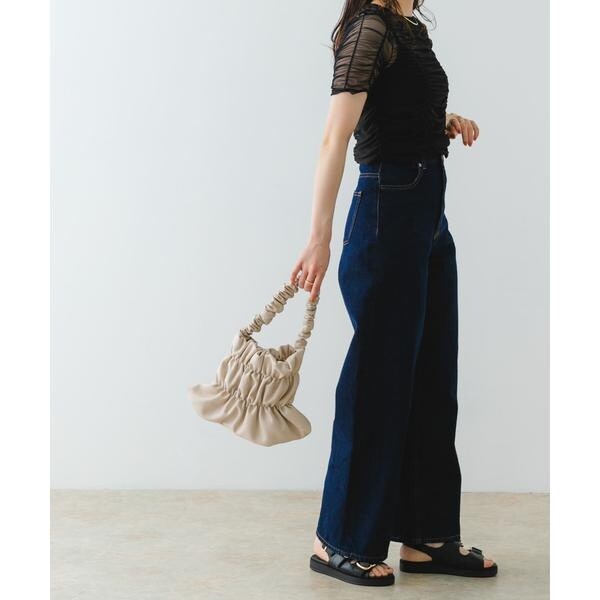 全体にあしらわれたギャザーがトレンドライクな印象に。ギャザー部分は伸縮性があり荷物の出し入れも楽々。