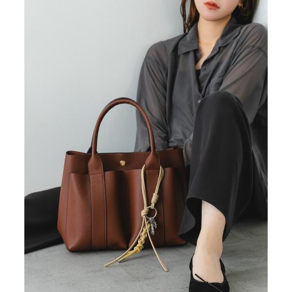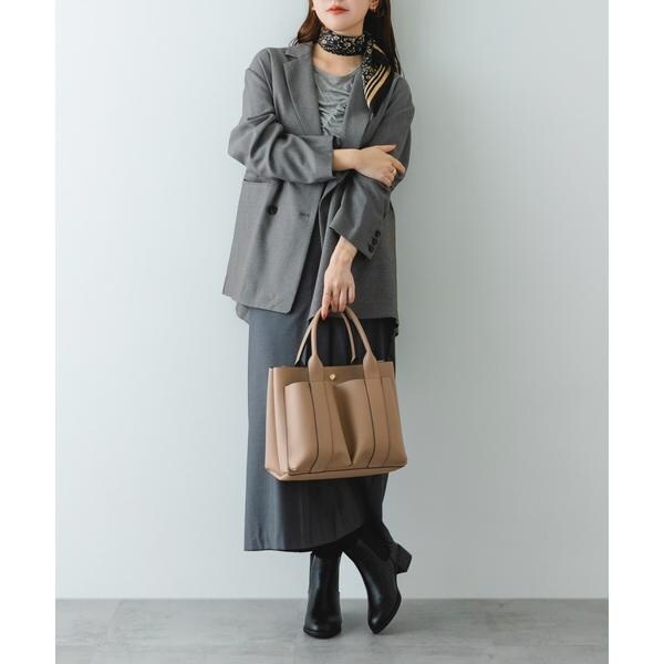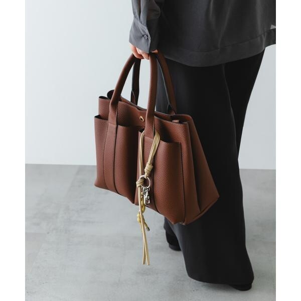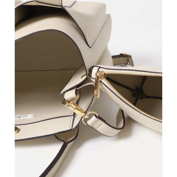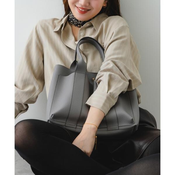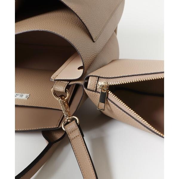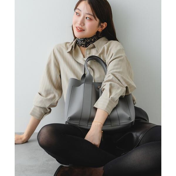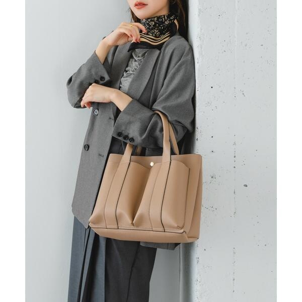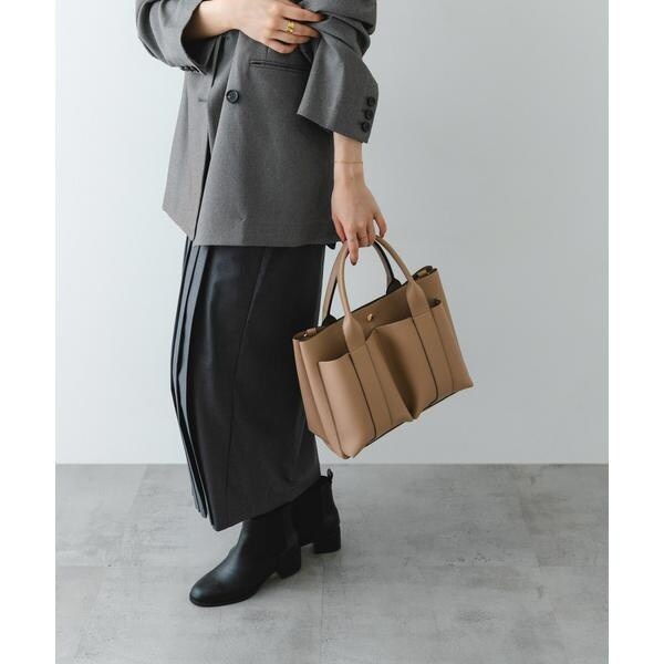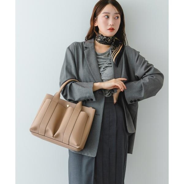 バッグ内部にはインポーチ付きで荷物の整頓がしやすくポーチだけでの使用も可能◎A4サイズ収納可能の為、お仕事用バッグにもオススメのサイズ感。サイドのスナップボタンで幅の調整もして頂けます◎