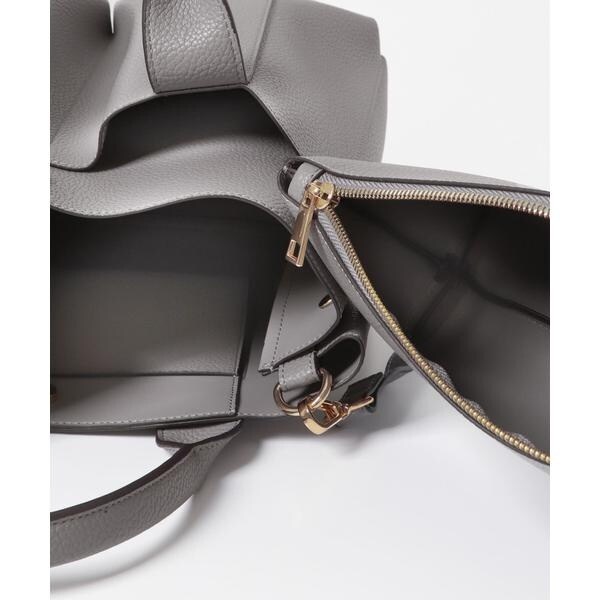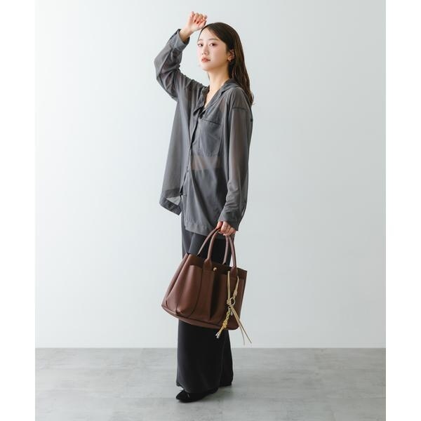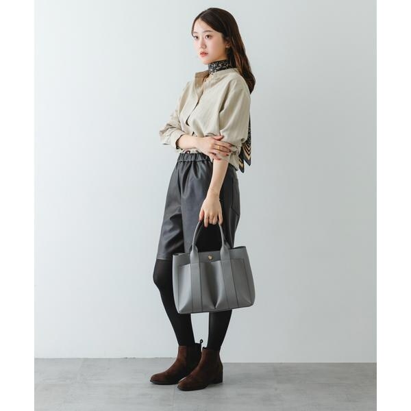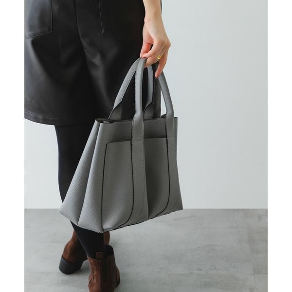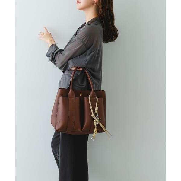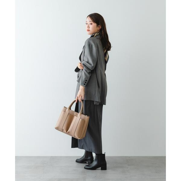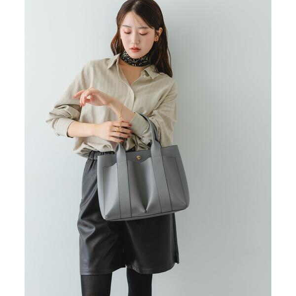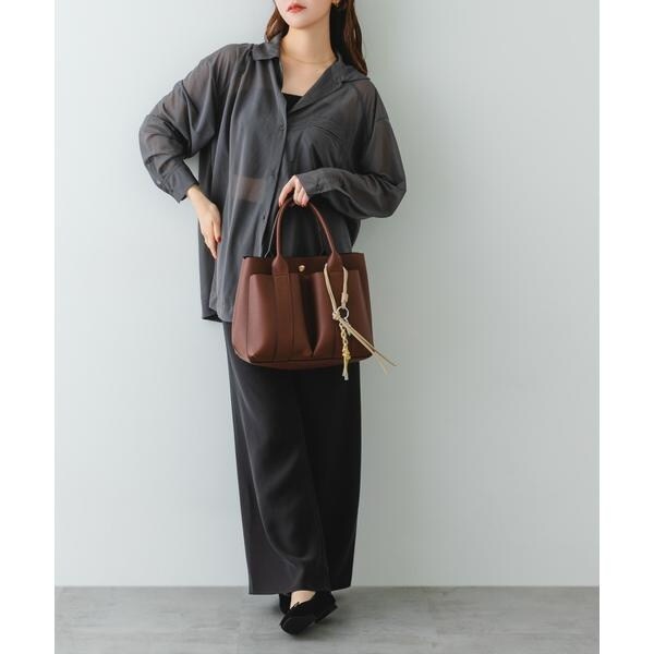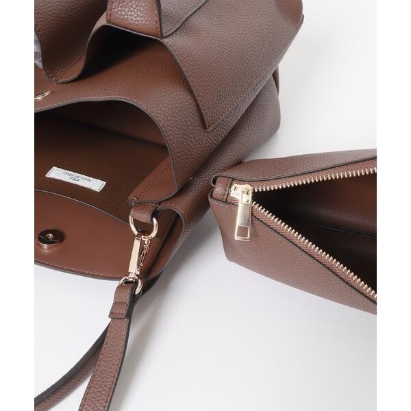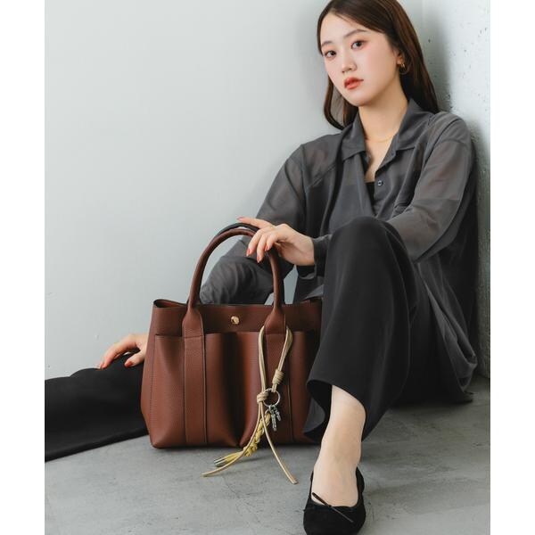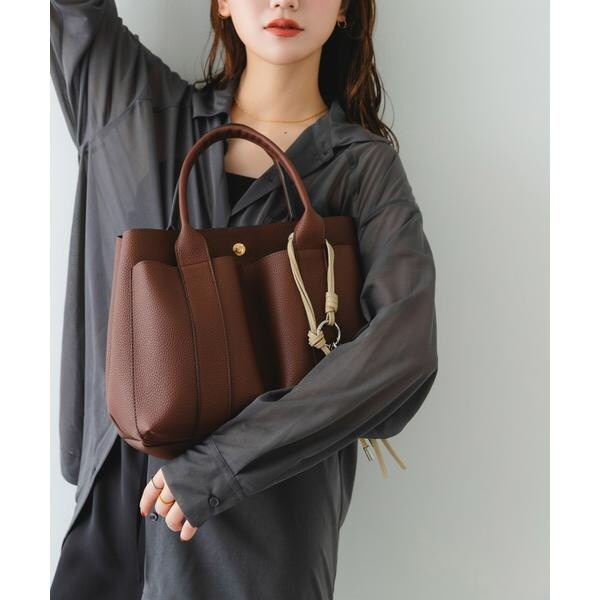 バッグ内部にはインポーチ付きで荷物の整頓がしやすくポーチだけでの使用も可能◎A4サイズ収納可能の為、お仕事用バッグにもオススメのサイズ感。サイドのスナップボタンで幅の調整もして頂けます◎