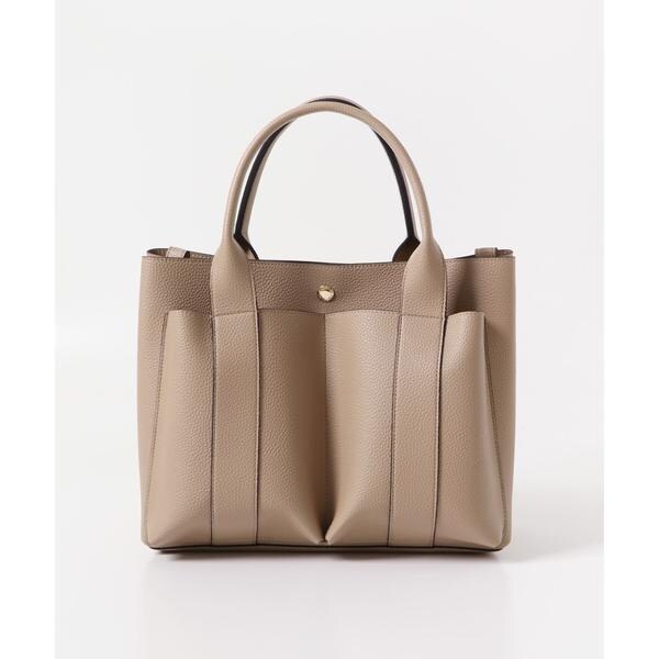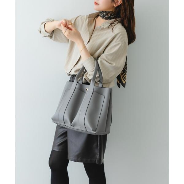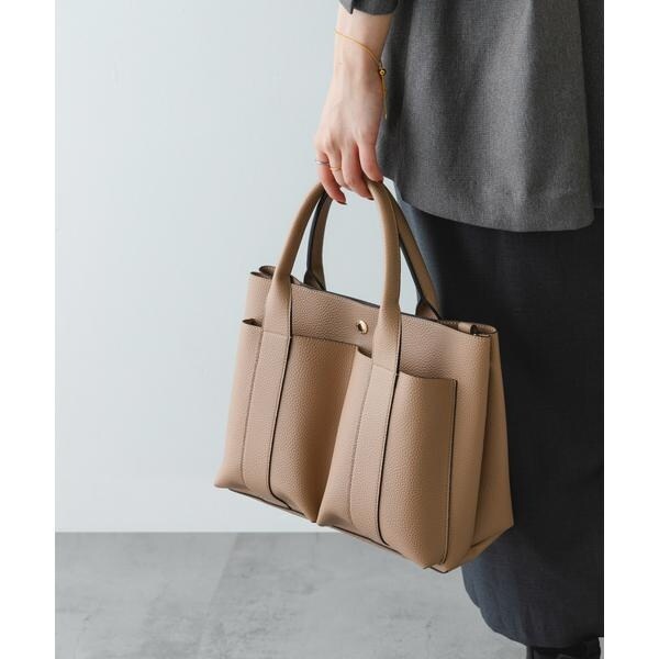 キャッチーなダブルポケットデザインがポイントの、収納力抜群なトートバッグ。