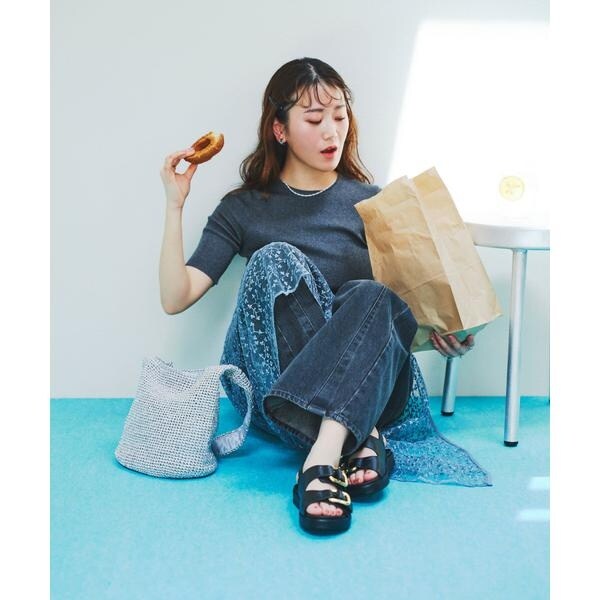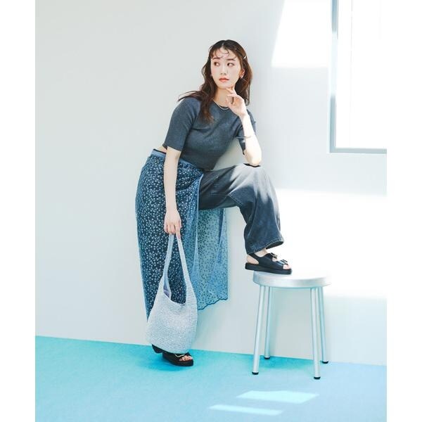 シンプルになりがちな春夏のスタイリングにも映えるラメ糸を使用。