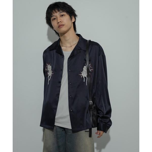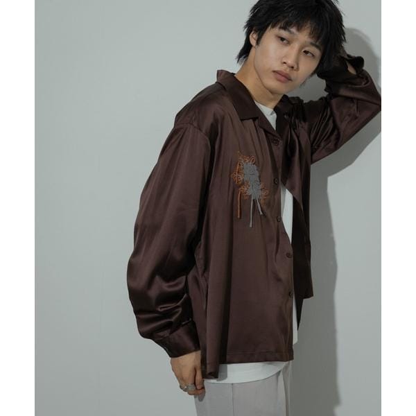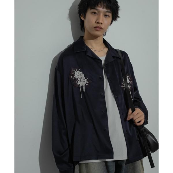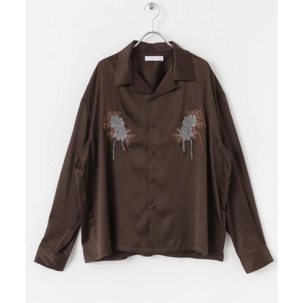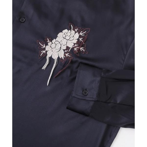 フロントのボタニカル刺繍がアクセントの大人シャツ