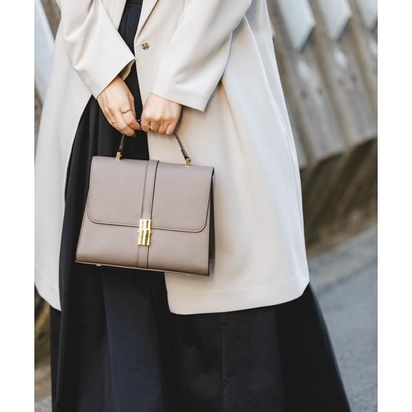 ゴールドの金具がアクセントになった、上品な印象のハンドバッグ