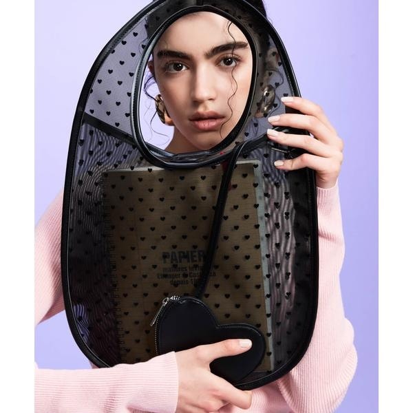 シアー生地のハート柄が目を惹くトートバッグ