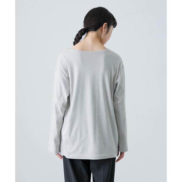 ワードローブに加えたい定番アイテムが届きました。生地はコットンをベースに、レーヨン・ウールをブレンドした素材を使用。柔らかさと膨らみ感が特徴です。1枚でも着やすいように、からだの線を拾いにくいサイズに仕上げています。やや長めの袖がポイントでラフにまくって抜け感を出すのもおすすめ。パンツやスカートに合わせたり、ジャケットやカーディガンのインナーにも重宝します。ベストとのレイヤードも素敵ですよ。お尻にかかる丈感なので、ボトムスに前だけインしても横からすっきり見え、コーディネートに活躍する一品。