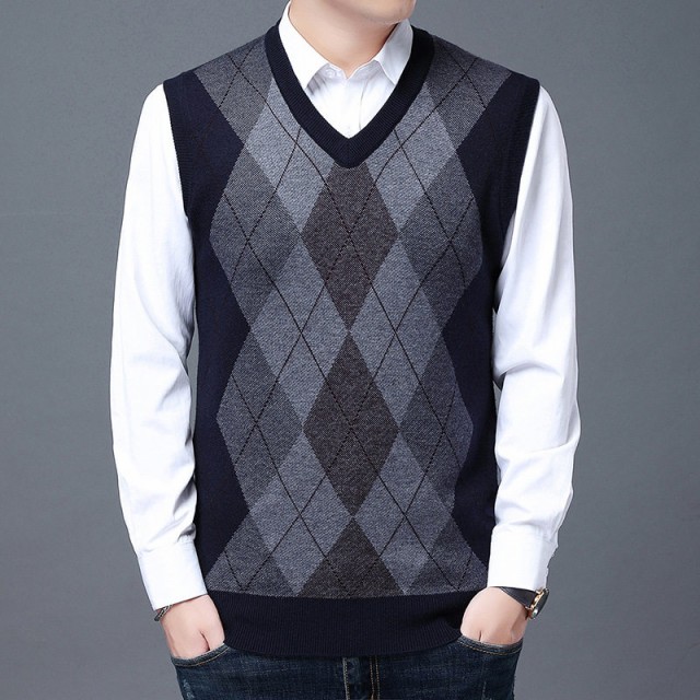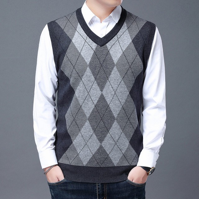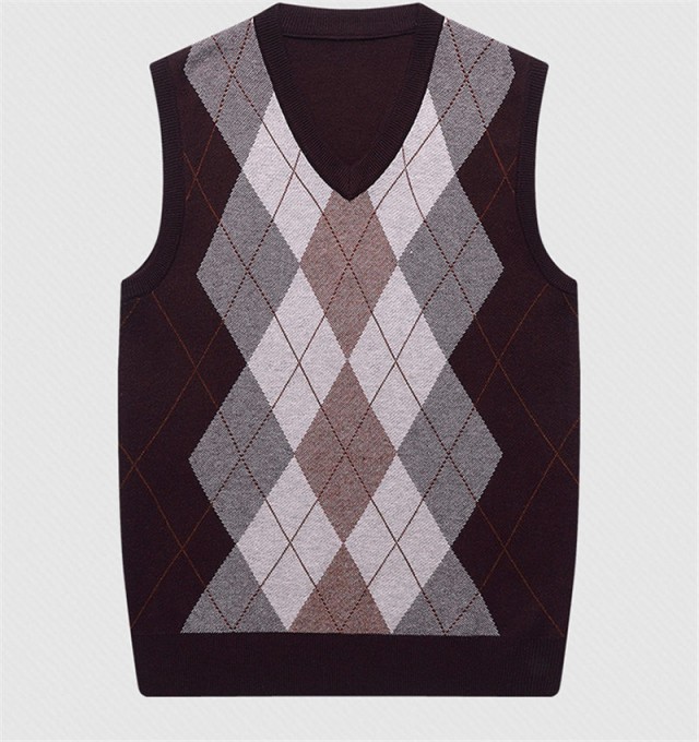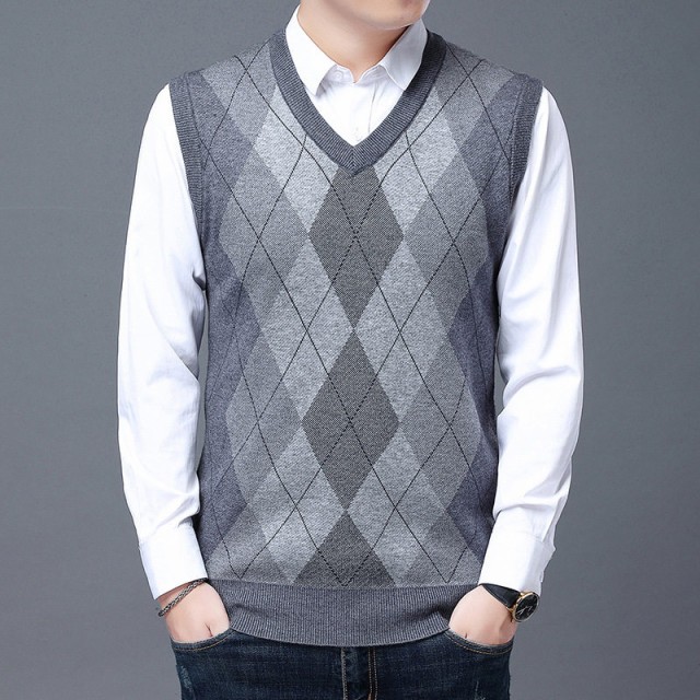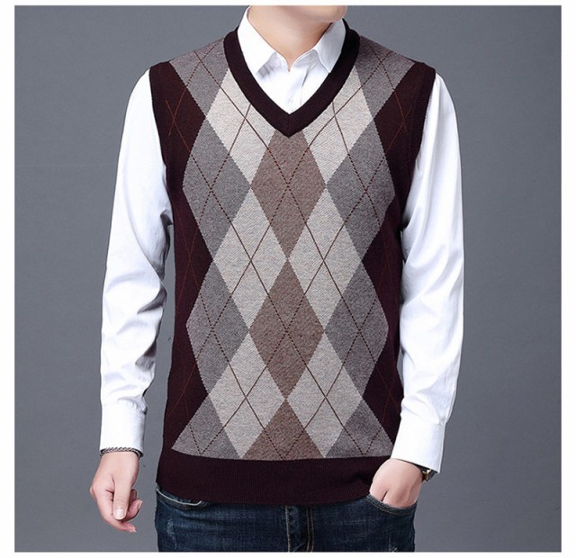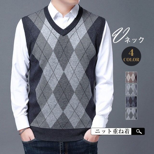 【ポイント10倍!】ニットベスト メンズ Vネック チェック柄 ノースリーブ セーター ハイゲージニット チョッキ ビジネス ウォッシャブル フォーマル 寒さ対策