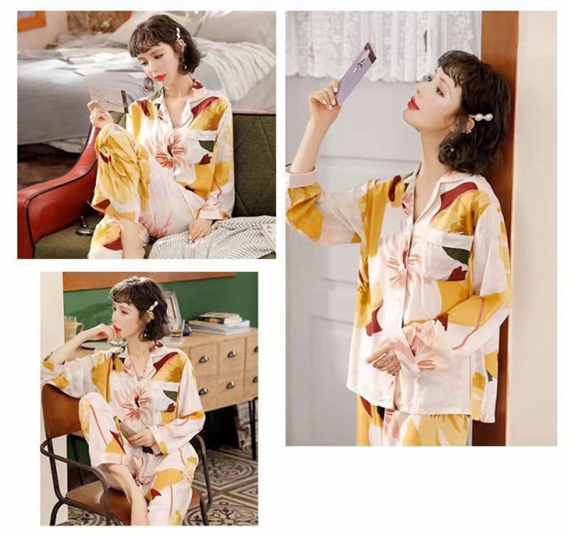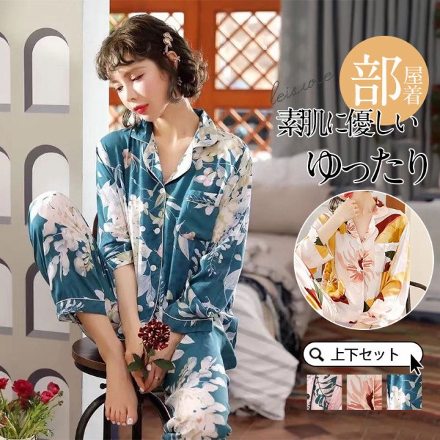 【ポイント10倍!】パジャマ レディース セットアップ ルームウェア 前開き 寝巻き 長袖 長ズボン 春 夏 秋 母の日 シンプル 大人 ゆったり 上