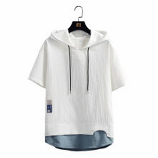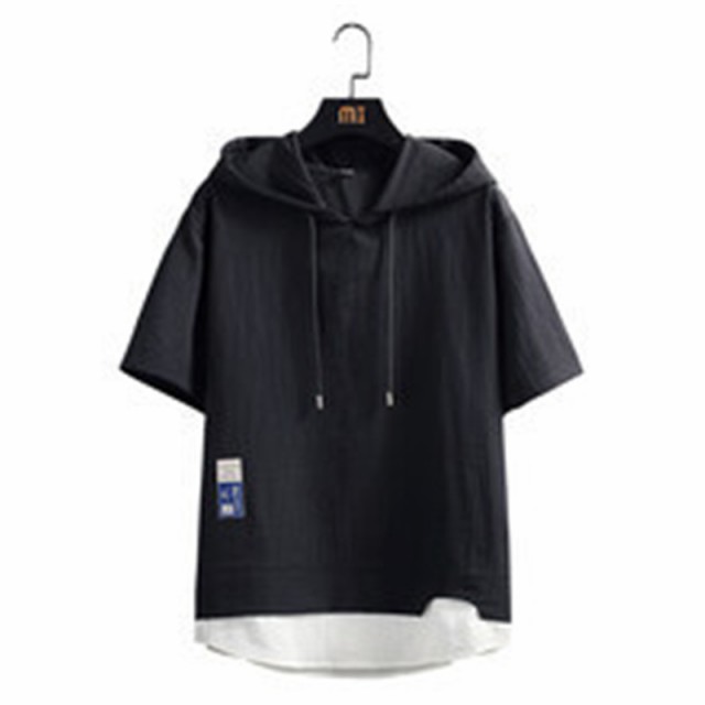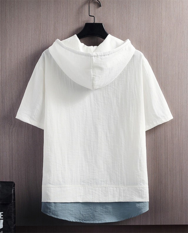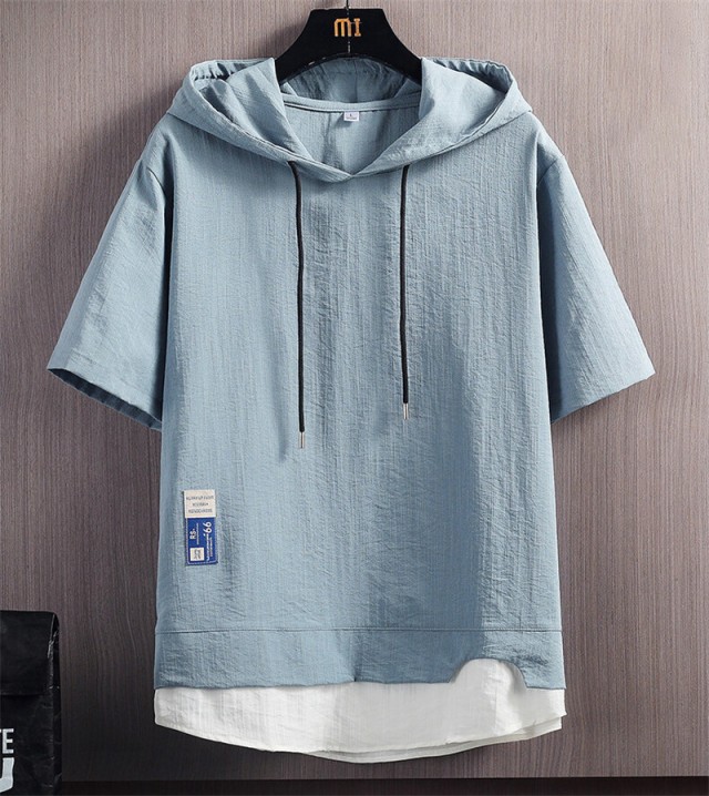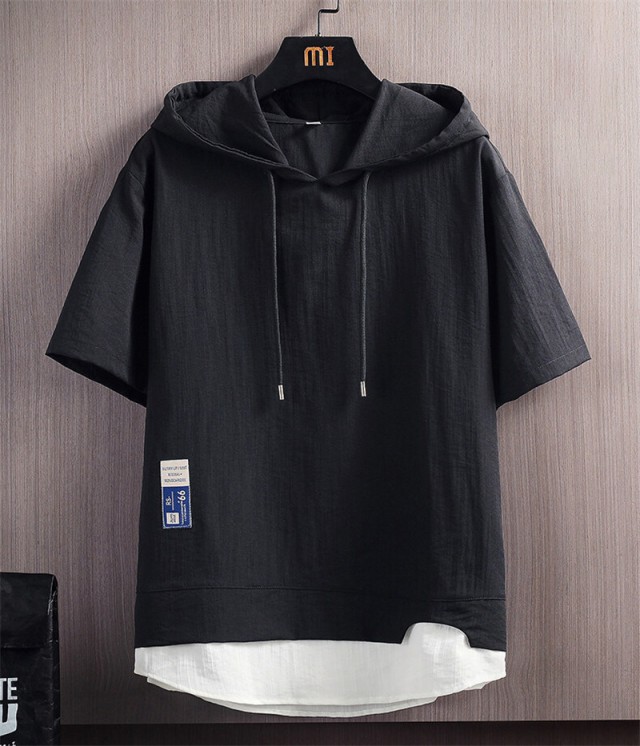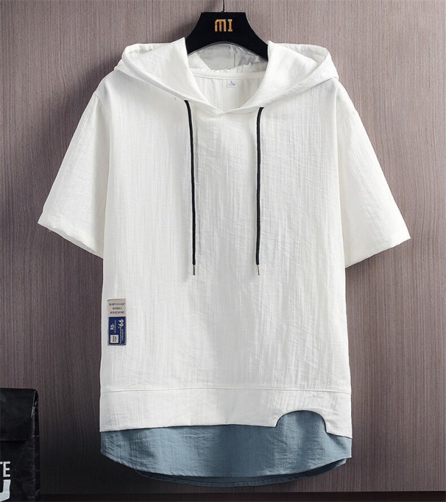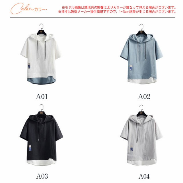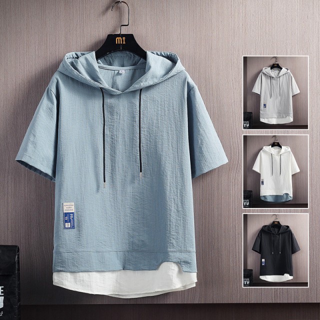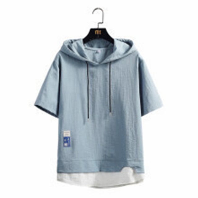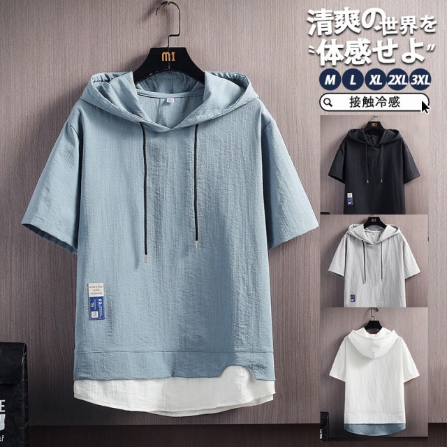 【ポイント10倍!】パーカー メンズ 夏 接触冷感 Tシャツ 重ね着風 プルオーバー 半袖 フード付き 父の日 ゆったり トップス 薄手 カジュアル