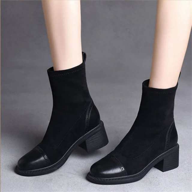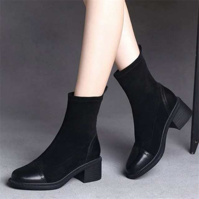 【キーワード】ソックス ブーツ レディース ショートブーツ 太ヒール チャンキーヒール ブーツ ショート アーモンドトゥ 黒 裏ボア 秋冬 歩きやすい おしゃれ シンプル カジュアル きれいめ 秋 冬