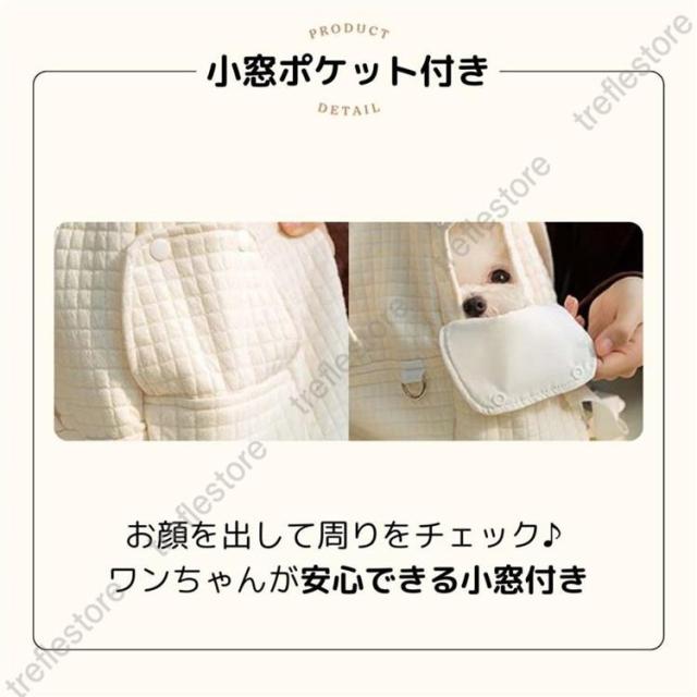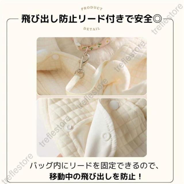 ポケットがたくさんついており、動物病院の診察券やスマートフォンなどの小物入れに便利です。