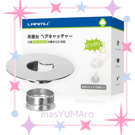 LANMU 洗面台 ヘアキャッチャー 洗面所 排水口 ゴミ受け ステンレス製 排水口径3.5-4.8CM 用 ピッタリ 排水口ネットホルダー 100枚 水切りネット付き 髪の毛キャッチャー 排水溝 掃除