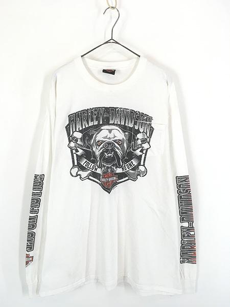 古着 10s HARLEY DAVIDSON ブルドッグ グラフィック 長袖 ポケット Tシャツ ロンT ポケT XXL 古着
