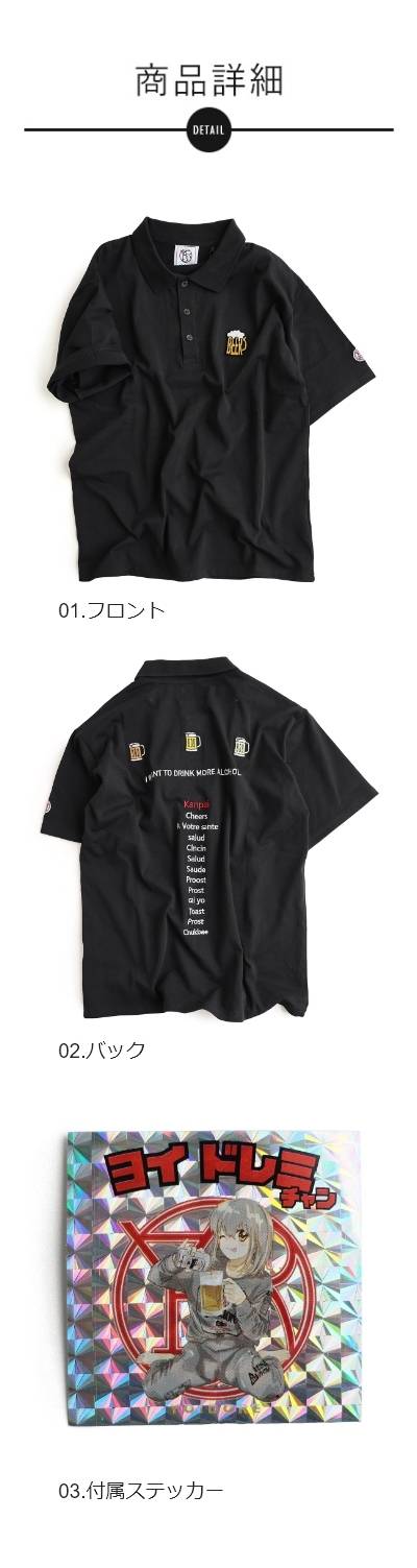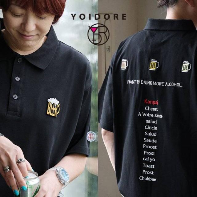 ポロシャツ 半袖 メンズ レディース バックデザイン ロゴ 刺繍 ビール 綿100 コットン 通気性 しっかり生地 ボックスシルエット 大きいサイズ カジュアル 夏 パティ YOIDORE ヨイドレ