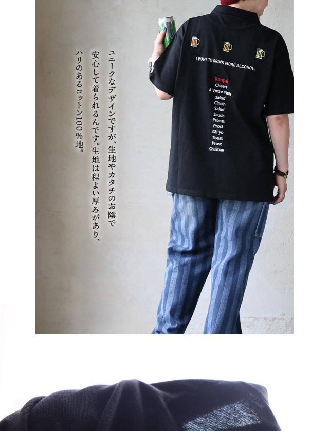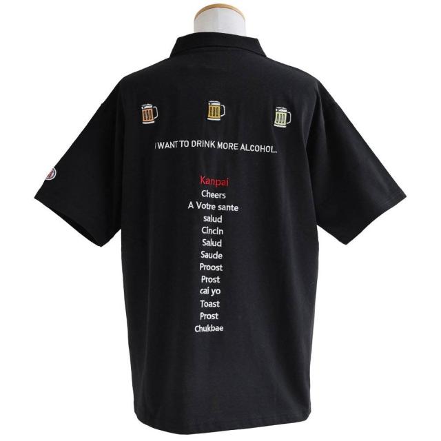 ポロシャツ 半袖 メンズ レディース バックデザイン ロゴ 刺繍 ビール 綿100 コットン 通気性 しっかり生地 ボックスシルエット 大きいサイズ カジュアル 夏 パティ