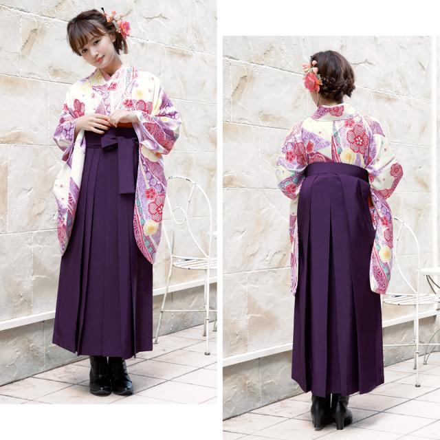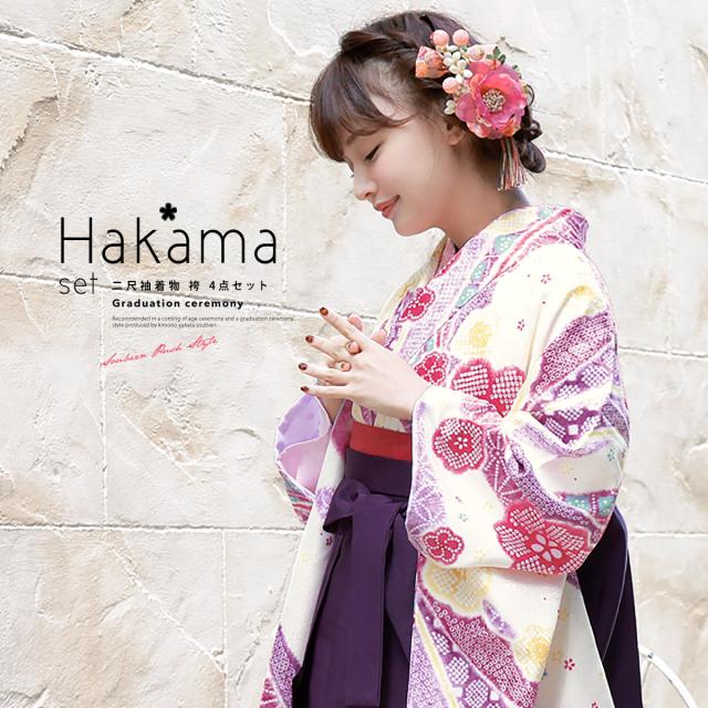袴セット 販売 卒業式 レディース bonheur saisons ボヌールセゾン クリーム色 紫 梅 鹿の子 和柄 花柄 女の子 セット 大学生 小学生 レトロモダン 着物セット 購入 送料無料