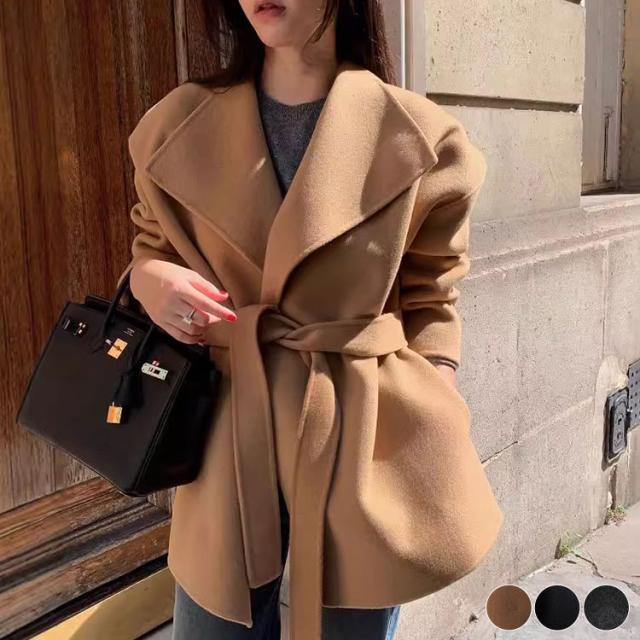 商品説明 韓国デザインのきれいめビッグカラーショートコート。