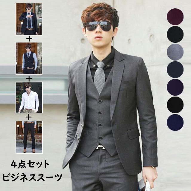 スーツ メンズ おしゃれ セットアップ スリムスーツ 細身 結婚式 花息子 パーティー オールシーズン 春夏秋冬
