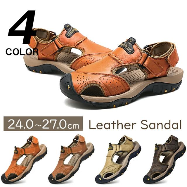 サンダル メンズ レザー おしゃれ マジックテープ サイズ調整可 歩きやすい 疲れない アウトドア レジャー シンプル 海 砂浜 川 釣り 貝 石 足裏 散歩