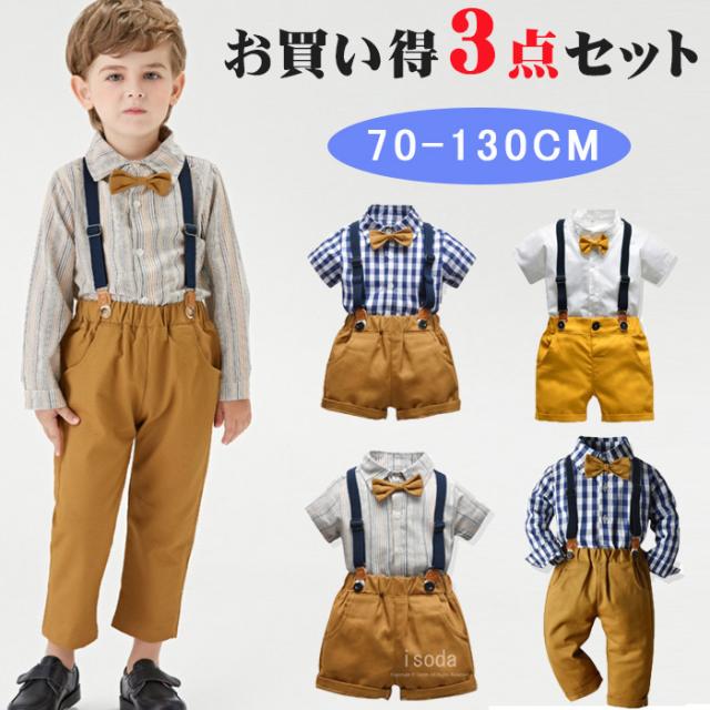 フォーマルスーツ キッズスーツ 子供スーツセット フォーマルロンパース かっこいい オーバーオール 衣装 ベビー服 出産祝い 結婚式 お宮参り70-130cm 七五三 初節句入園式