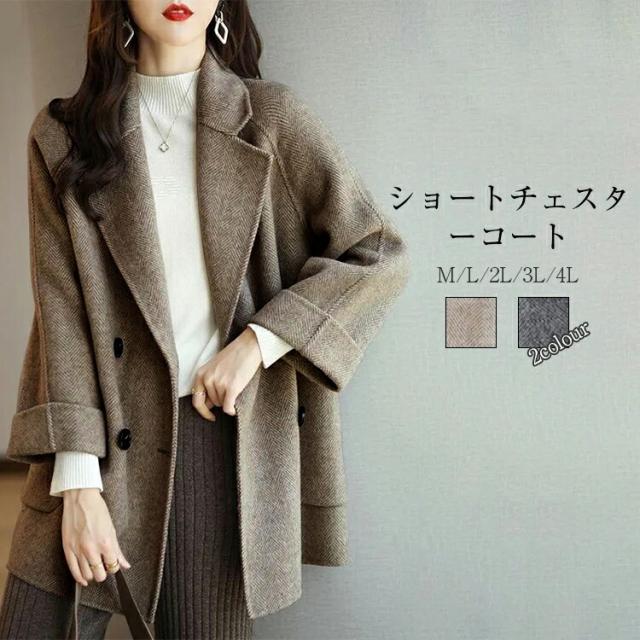 チェスターコート コート レディース 秋冬 長袖 ショートチェスターコート ショートコート アウター ジャケット ショート丈 羽織 厚手 防寒 暖かい 裏地付き ポケット付き 大きいサイズ おしゃれ