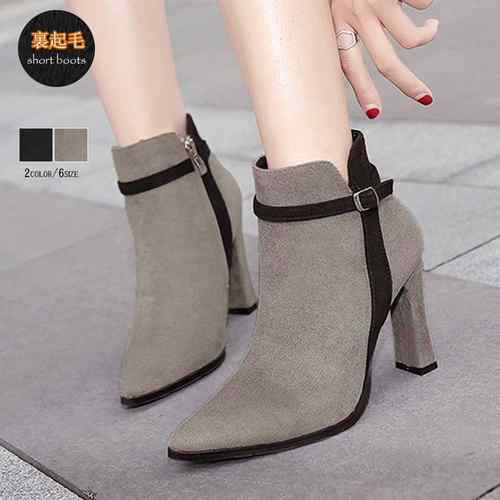 ショートブーツ レディース スエードブーティ 裏起毛 ポインテッドトゥ 太ヒール 靴 暖かい ブーツ 歩きやすいシューズ アンクル ブーティ
