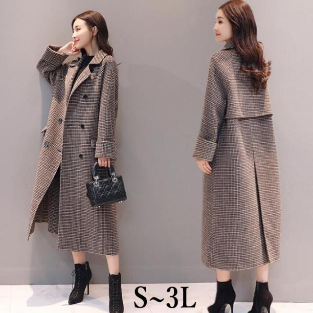 チェスターコート グレンチェック コートチェック アウター コート ロングロングコート レディース オシャレ レディースゆったり大きいサイズ秋冬S MLLL3L