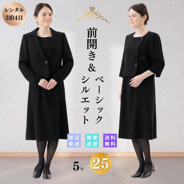 レンタル 礼服 喪服 ベーシック レディース 翌日配達 略礼服 ブラックフォーマル 女性 前開き 授乳 通夜 葬式 法事 入学式 卒業式 入園 卒園 ストレッチ 安い ゆったり オールシーズン 七分袖 30代 40代 50代 60代 70代 9号 11号 13号 15号 17号 19号 21号 23号 25号