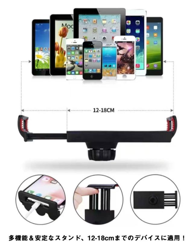 | スマホだけでなく、タブレットにも使用することができます。 多機能&安定なスタンド、12-18cmまでのデバイスに適用! ベッドで寝ながら動画鑑賞をするなど、シーンに合わせて自由に使用したい人にぴったり! 自分好みの使用角度・高さにできるので様々な場面で活躍する。 安定した台座しっかりとスマホを固定します。 | |