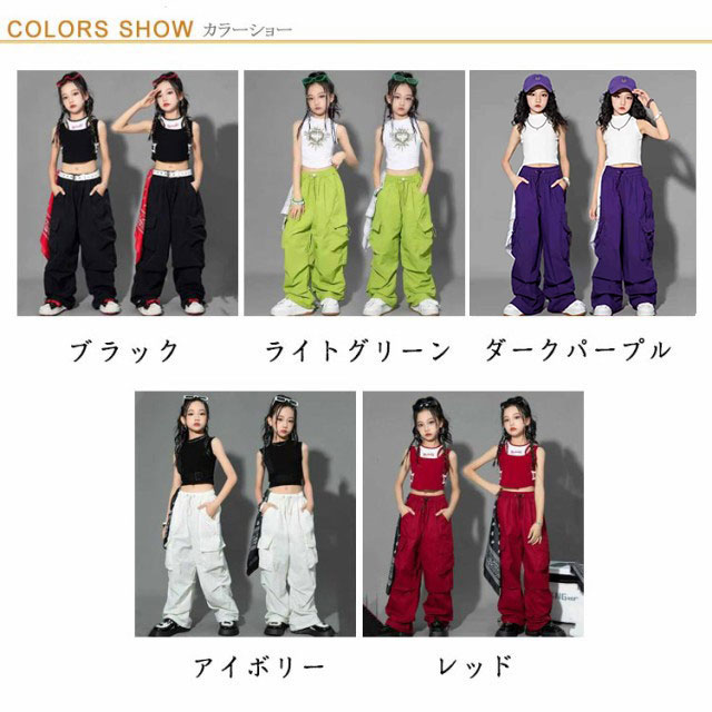 全13色 キッズ カーゴパンツ ダンス 衣装 ヒップホップ ジュニア レディース ブラック グリーン ピンク レッド パープル グレー hiphop kpop ズボン かっこいい ダンス衣装 練習着 レッスン着 発表会 可愛い 韓国 ストリート 子供 女の子 男の子 ガールズ 送料無料