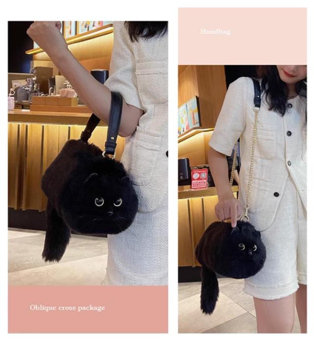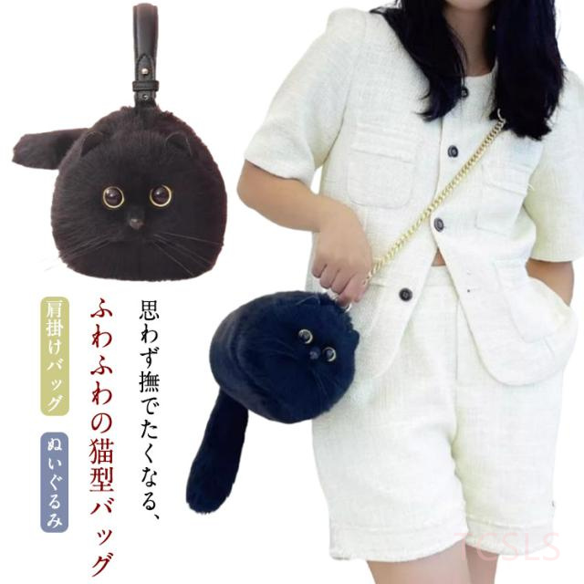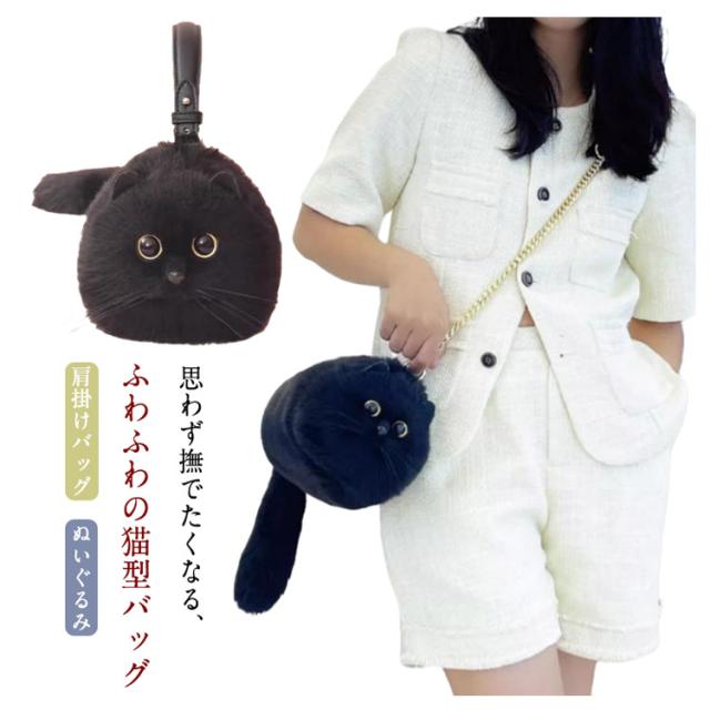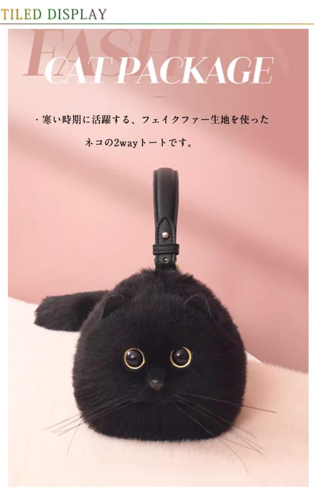 ネコ型トートバッグ ネコ好き エコファー ふわふわ ネコグッズ 黒猫 ネコ型トートバッグ 超リアル! 猫バッグ ショルダーバッグ ハンドバッグ 肩掛けバッグ ぬいぐるみ 猫好き 長毛 猫型 高級感 個性的 動物 ペット 癒し プレゼント