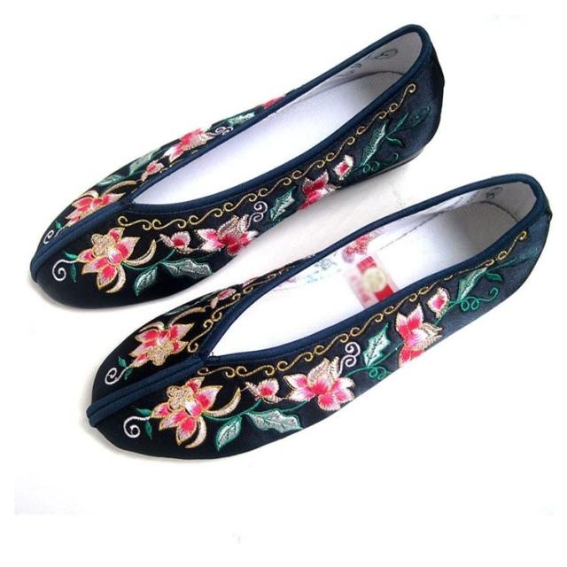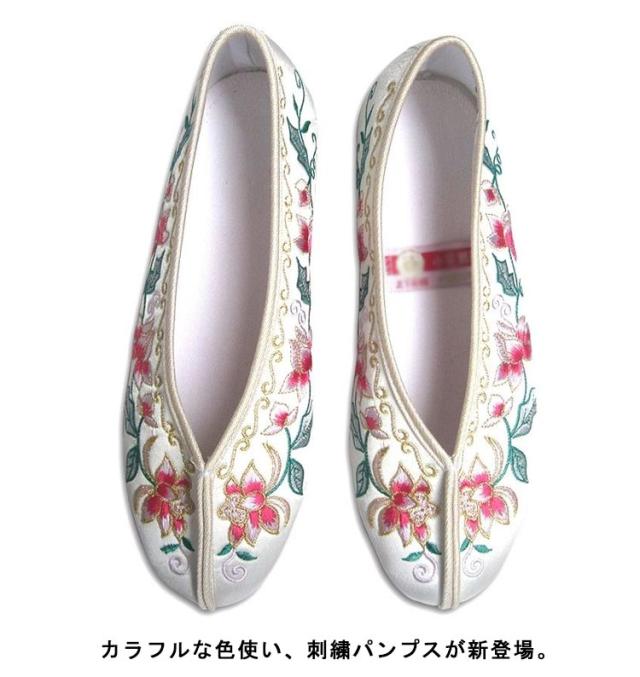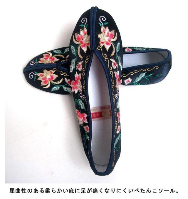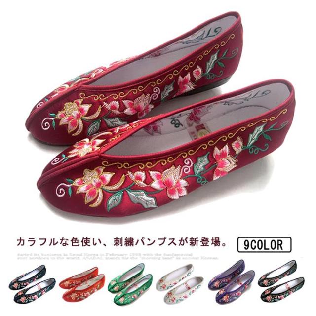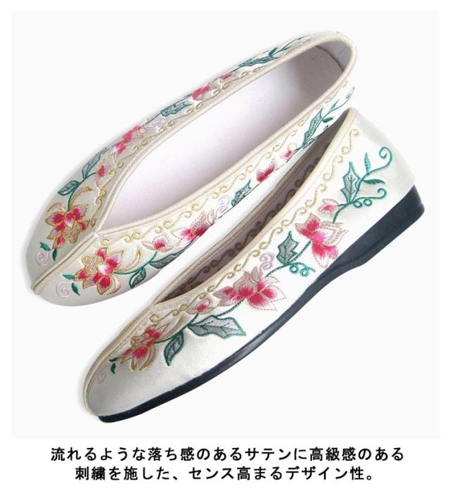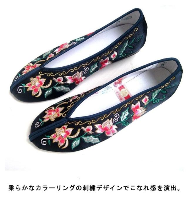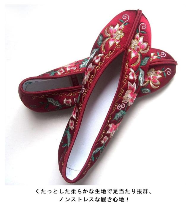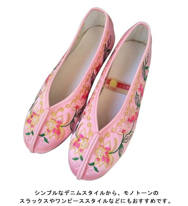送料無料 チャイナシューズ パンプス 台湾シューズ カンフーシューズ 中華風 チャイナ フラット フラットシューズ レディース ぺたんこペタンコ ぺたんこ靴 柔らかい 履きやすい 北京布靴 婦人靴 花柄刺繍