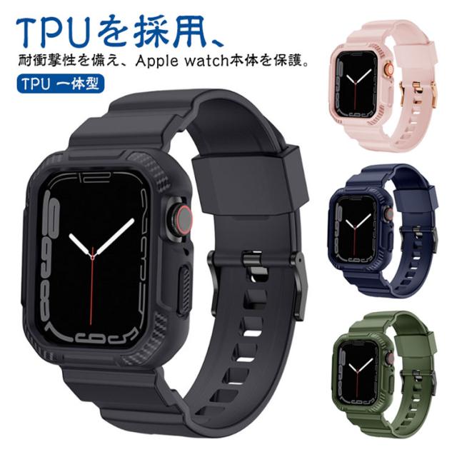 Apple watch バンド カバー 耐衝撃 一体型 series1 2 3 series4 5 6アップルウォッチ ケース 42mm 40mm 44mm バンド 38mm ベルト TPU 保護カバー case シリコン ケース 保護 スポーツ 交換バンド 交換ベルト アップルウオッチベルト 送料無料
