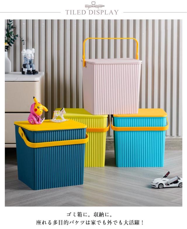 収納ボックス フタ付き バケツ 座れる ゴミ箱 おしゃれ ふた付き おしゃれ フタ付きバケツ つけ置き 収納ボックス 洗い桶 浸け置き たらい おもちゃ箱 収納ケース おもちゃ入れ キッズルーム スクエア 四角 洗車 収納