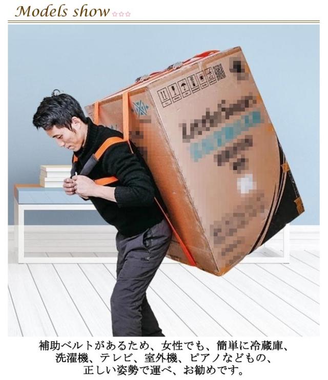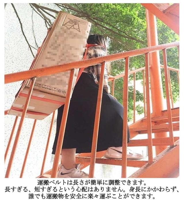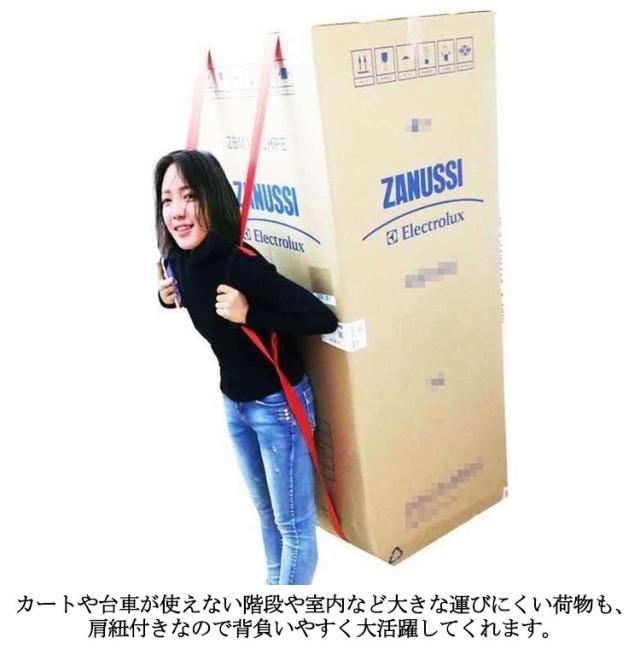 | 2本セット!大きな家具を簡単に楽々運べる運搬ベルト 補助ベルトがあるため、女性でも、簡単に冷蔵庫、洗濯機、テレビ、室外機、ピアノなどもの、正しい姿勢で運べ、お勧めです。 運搬ベルトは、軽量で耐久性があり、長時間使用することができます。 人間工学に基づく設計で負担を軽減します。自身の最も強い筋肉であ る脚の筋力を主に利用することにより、 全身の緊張をゆるめ、腰・背中・腕の負担を軽くします。 カートや台車が使えない階段や室内など大きな運びにくい荷物も、肩紐付きなので背負いやすく大活躍してくれます。 運搬ベルトは長さが簡単に調整できます。長すぎる、短すぎるという心配はありません。身長にかかわらず、誰でも運搬物を安全に楽々運ぶことができます。 | |